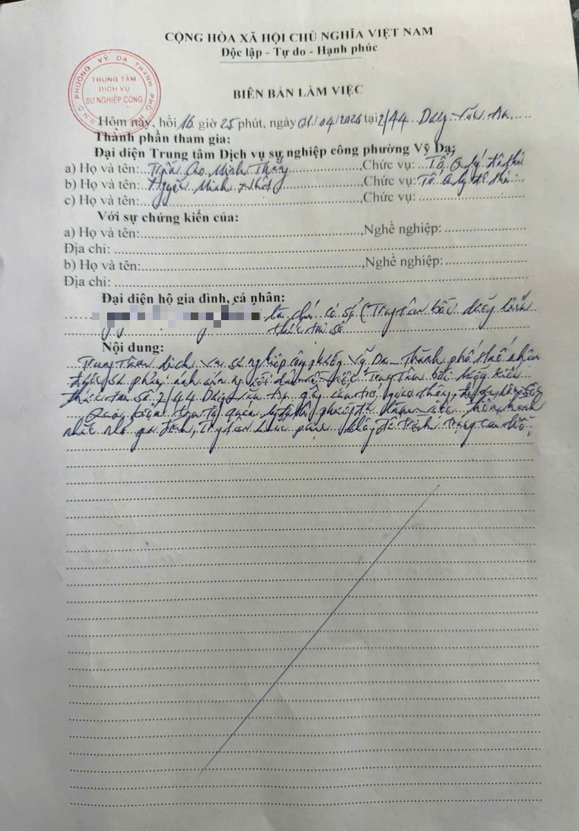 Sau khi nhận được phản ánh, UBND phường đã giao Trung tâm Dịch vụ sự nghiệp công phường Vỹ Dạ tiến hành kiểm tra và làm việc với chủ hộ tại địa chỉ nêu trên. Qua đó, Trung tâm đã yêu cầu chủ hộ khắc phục vi phạm và không để tình trạng tái diễn như nội dung đã phản ánh. Chủ hộ đã cam kết thực hiện đúng các yêu cầu đề ra. (Đính kèm biên bản và hình ảnh)