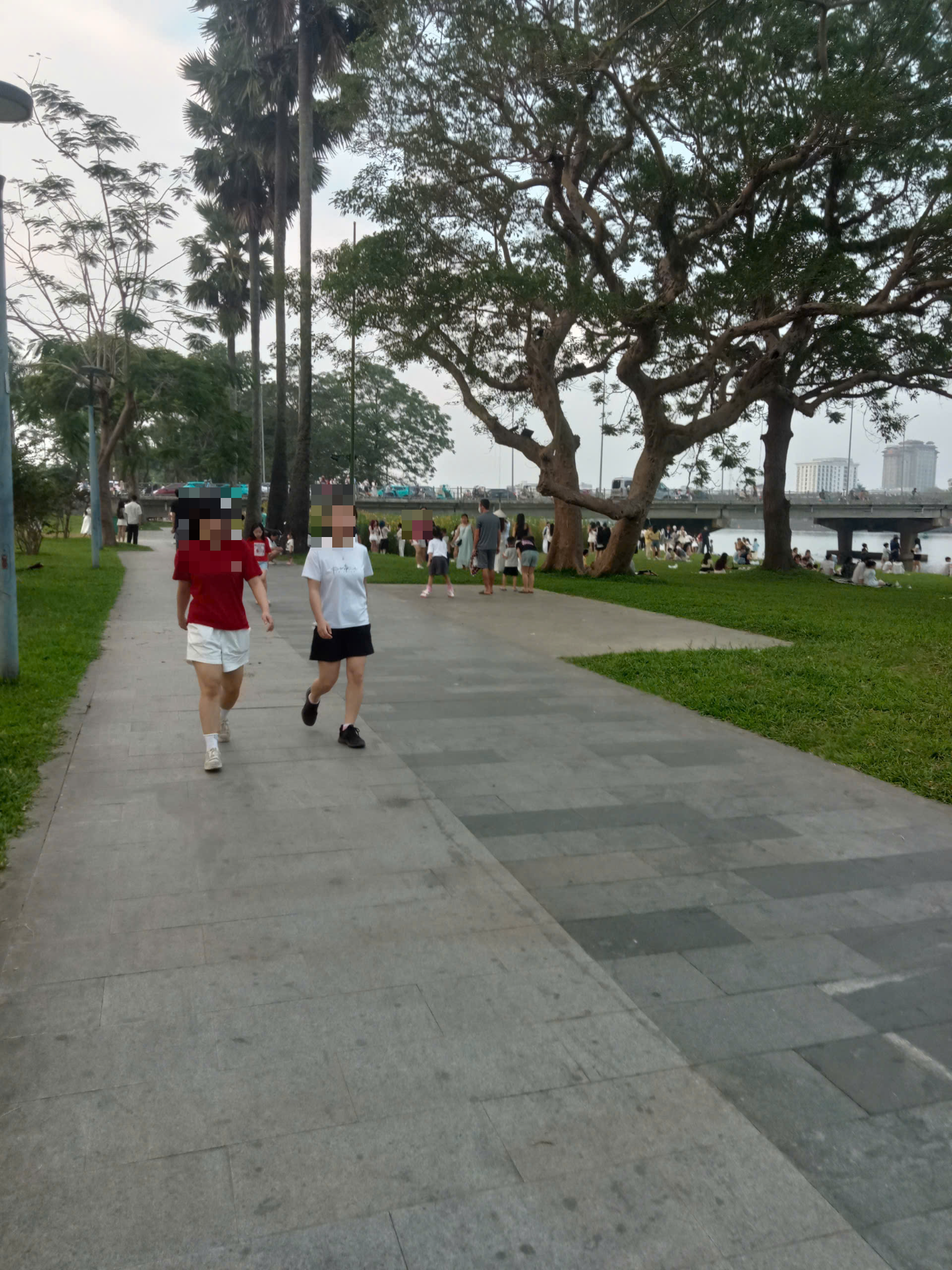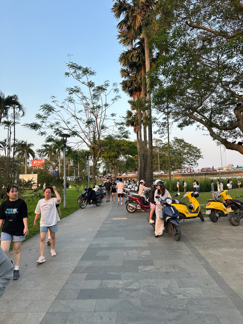 Trung tâm đã bố trí bảo vệ kiểm tra, ngăn chặn xe máy chạy vào đường đi bộ phía Bắc bờ sông Hương, tại công viên Phú Xuân (đính kèm hình ảnh.)