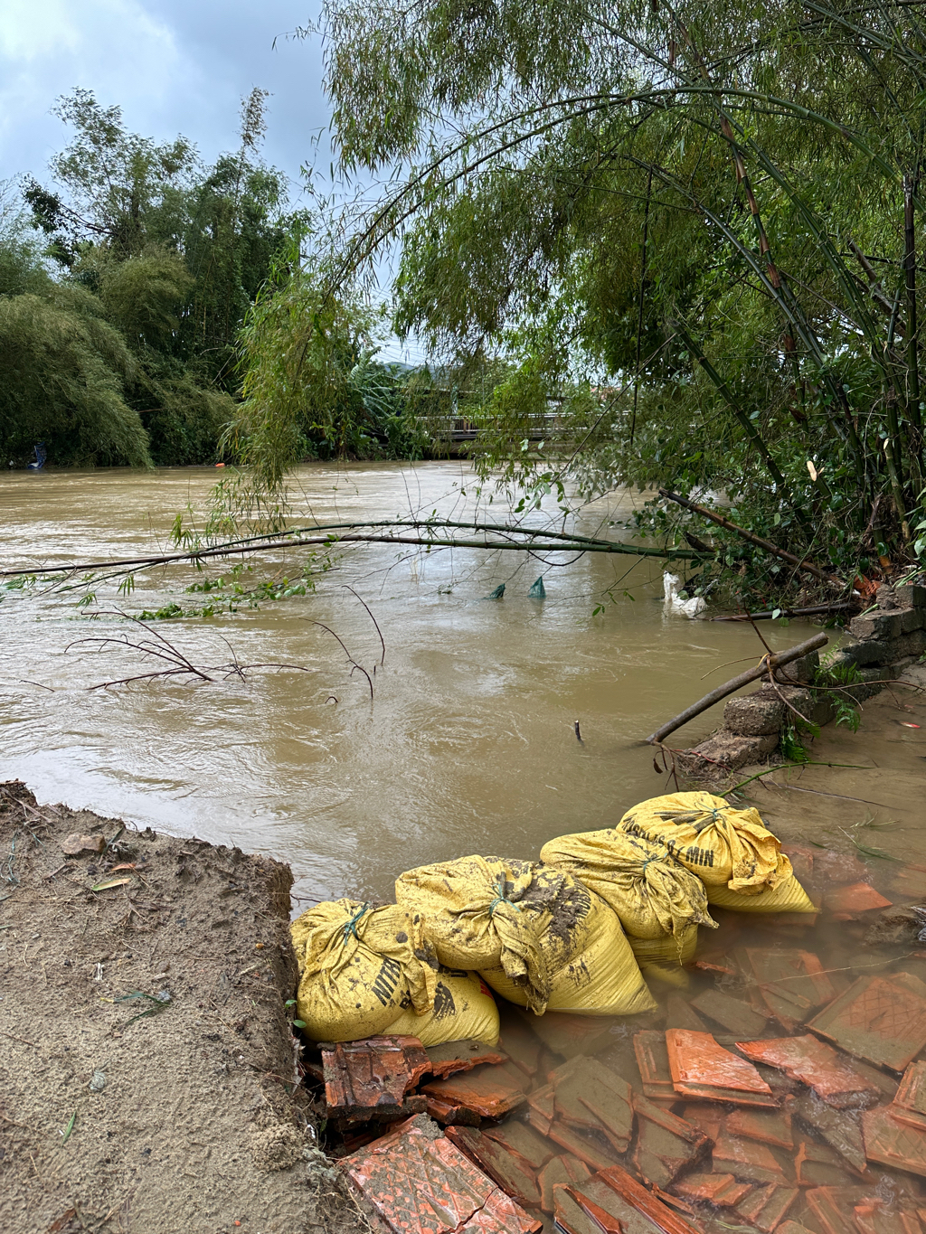Theo đó, UBND xã Phú Lộc đã chỉ đạo Phòng Kinh tế tiến hành kiểm tra và khắc phục tạm thời bằng việc cắm cừ tre gia cố bao cát để giảm sạt lỡ (có hình ảnh kèm theo). Đồng thời, UBND xã đã rà soát, thống kê, tổng hợp tình hình mưa lũ, ngập lụt, lũ quét, sạt lở đất trên địa bàn xã và ban hành Báo cáo số 220/ BC-UBND ngày 29/10/2025 về tình hình mưa lũ, ngập lụt, lũ quyét, sạt lỡ đất gửi UBND thành phố; trong đó, có kiến nghị bố trí kinh phí để xử lý khẩn cấp bờ sông Cầu Hai đoạn cầu Khe Thị bị sạt lở. Sau khi có chỉ đạo của UBND thành phố, UBND xã sẽ chỉ đạo các cơ quan chuyên môn xử lý vị trí nêu trên nhằm đảm bảo an toàn cho Nhân dân.