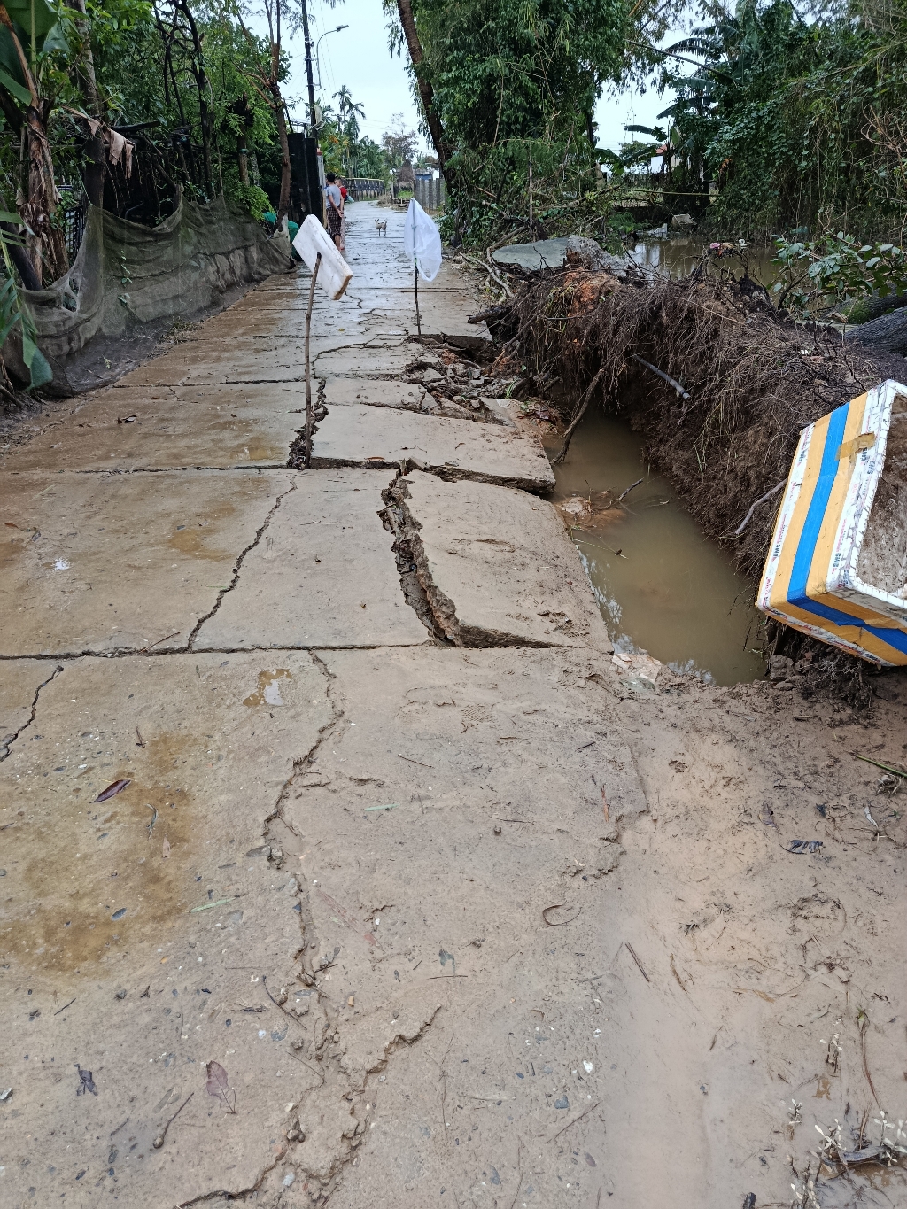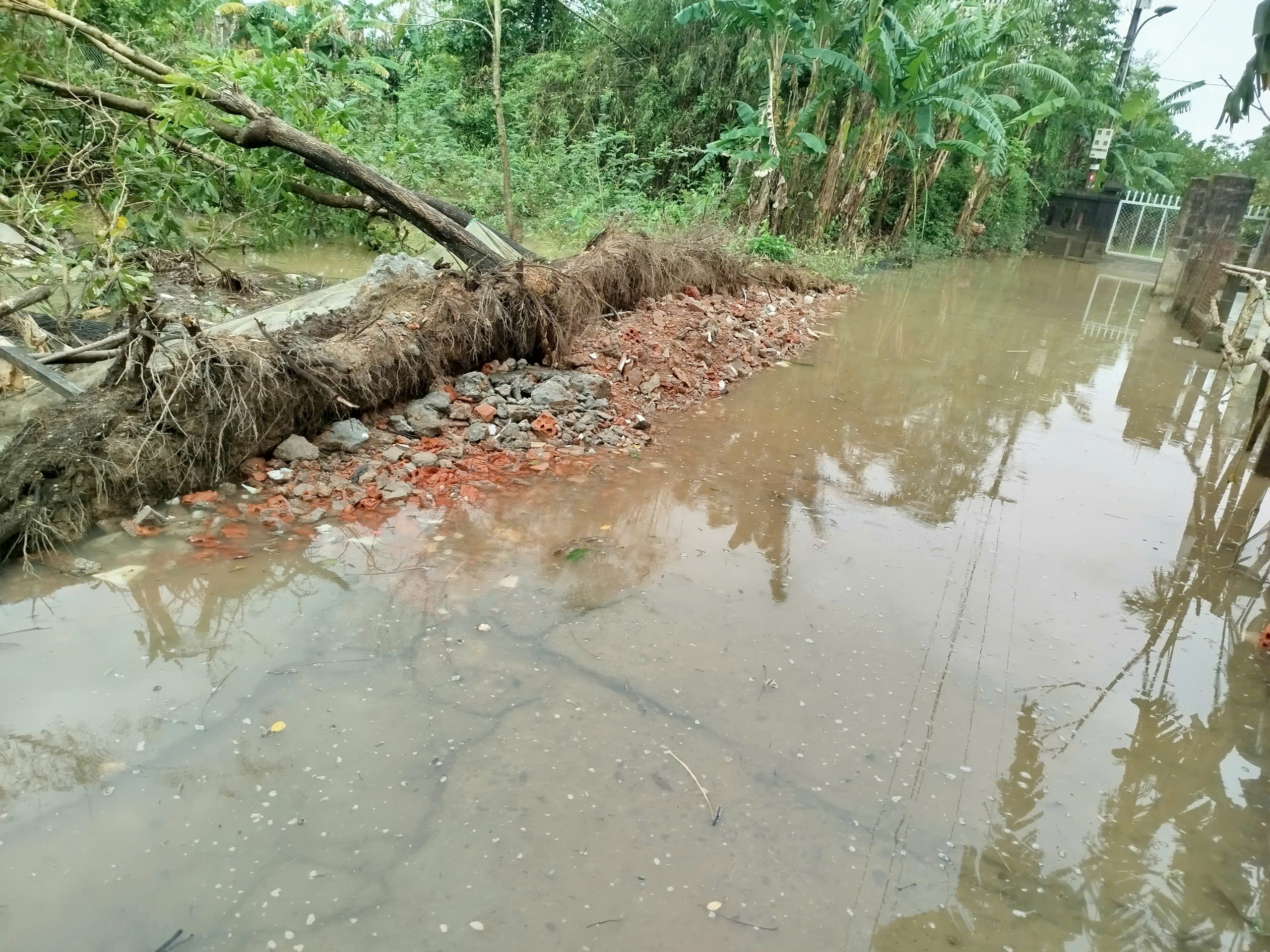 UBND phường Dương Nỗ chỉ đạo Phòng Kinh tế, Hạ tầng và Đô thị phường phối hợp TDP Lại Lộc kiểm tra thực tế và có hướng xử lý tạm thời để nhân dân đi lại.