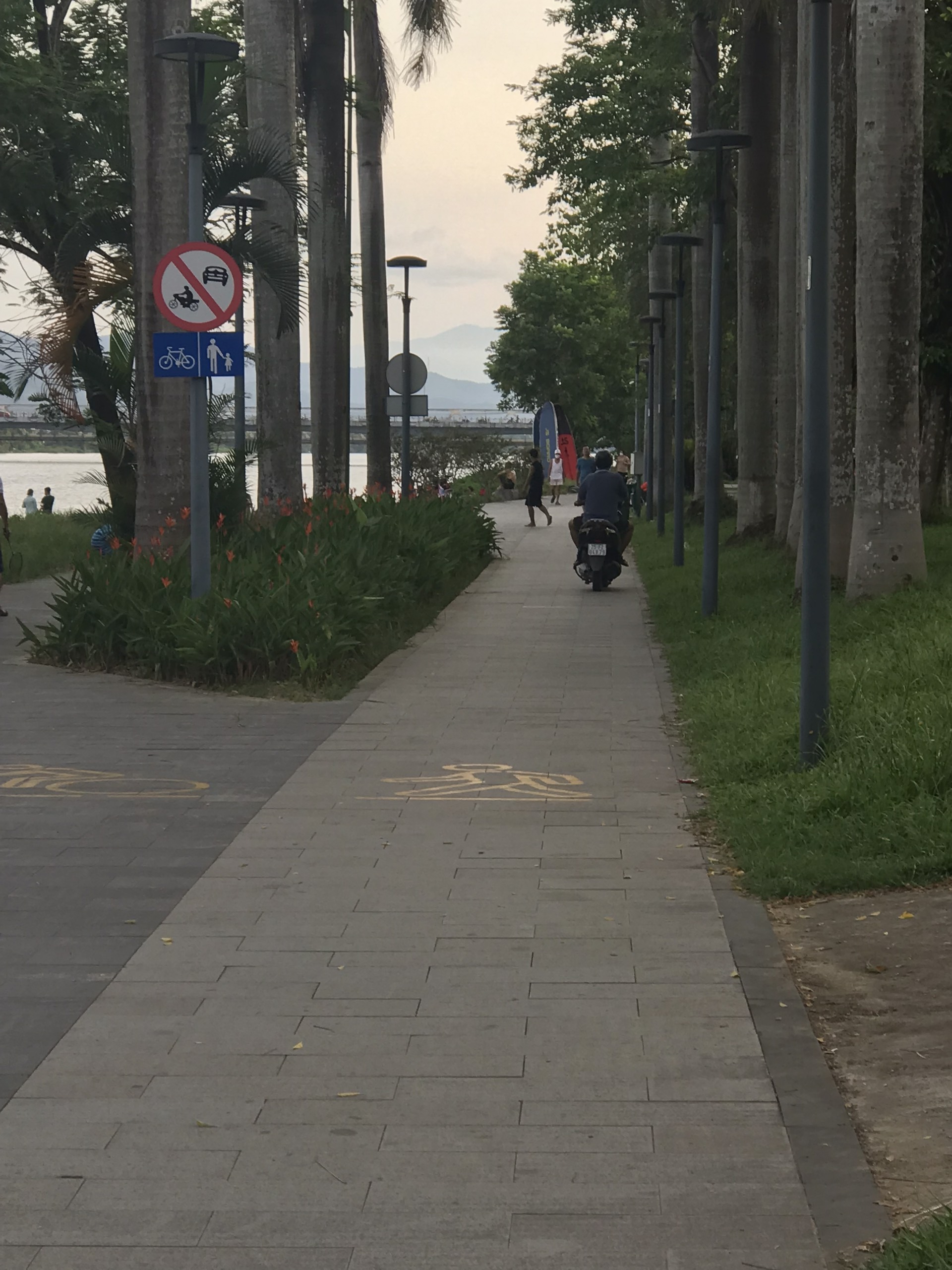 Hiện nay các lối đi thuộc các công viên dọc sông Hương như công viên Phú Xuân, 3/2, Thương Bạc, Bến Me, Lê Lợi được bố trí dành riêng cho người đi bộ và người đi xe đạp. Cấm tất cả các xe mô tô, xe gắn máy, xe ô tô và các loại xe tương tự di chuyển, dừng, đỗ tại khu vực.