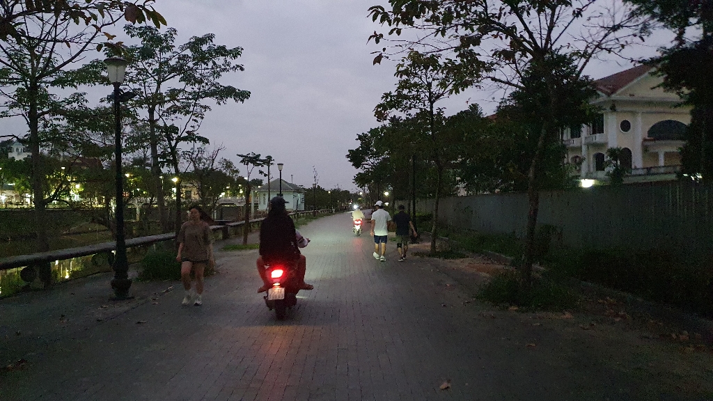 Đoạn đường phía sau Học viện âm nhạc Huế có cắm bảng đường dành riêng cho người đi bộ. Tuy nhiên hiện giờ xe máy và cả ô tô đều chạy vào đường này, rất nguy hiểm cho người dân và du khách khi đi bộ ngắm cảnh cũng như chạy bô thể dục qua đoạn đường này. Thời gian chụp ảnh lúc 17h40 ngày 7/12/2025.