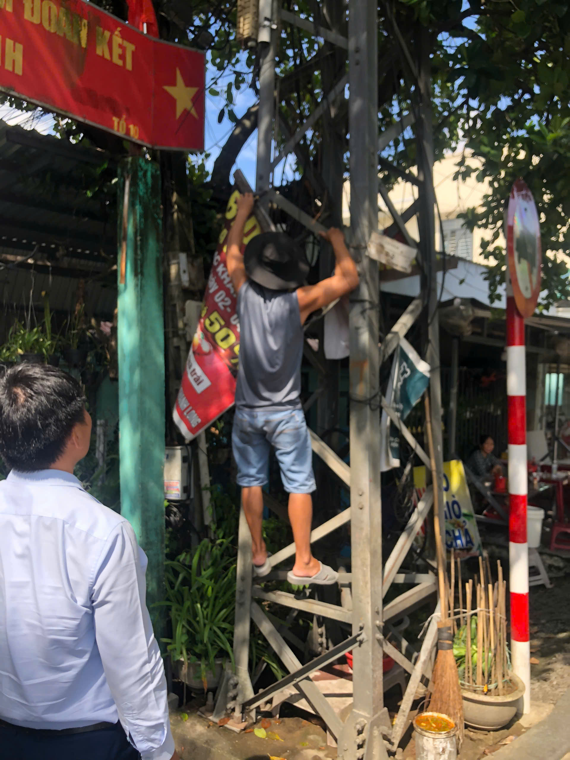 Sau khi nhận được phản ánh, Trung tâm Dịch vụ sự nghiệp công đã đến địa chỉ kiệt 1-3 Đào Duy Anh để kiểm tra và phối hợp với thành viên Tổ ANCS để tiến hành tháo gỡ biển quảng cáo treo không đúng quy định (đính kèm hình ảnh); công tác kiểm tra xử lý được tiến hành liên tục hàng ngày trên toàn bộ địa bàn phường.