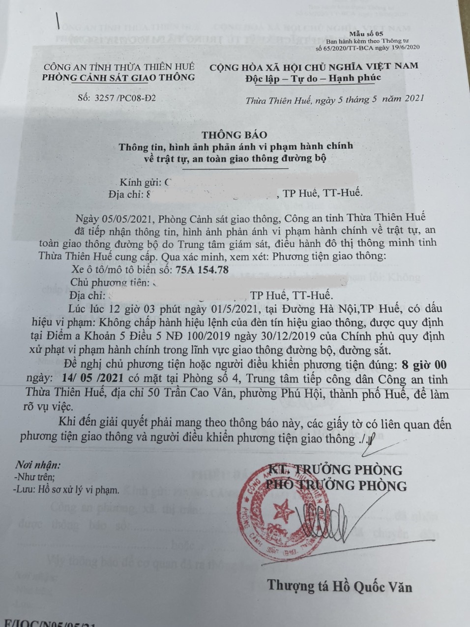 Phòng CSGT đã lập hồ sơ, thông báo chủ phương tiện đến làm việc vào ngày 14/5/2021. Tuy nhiên, hiện chủ phương tiện vẫn chưa trình diện tại cơ quan. Phòng CSGT sẽ gửi thông báo ngăn chặn kiểm định tại cơ quan đăng kiểm.