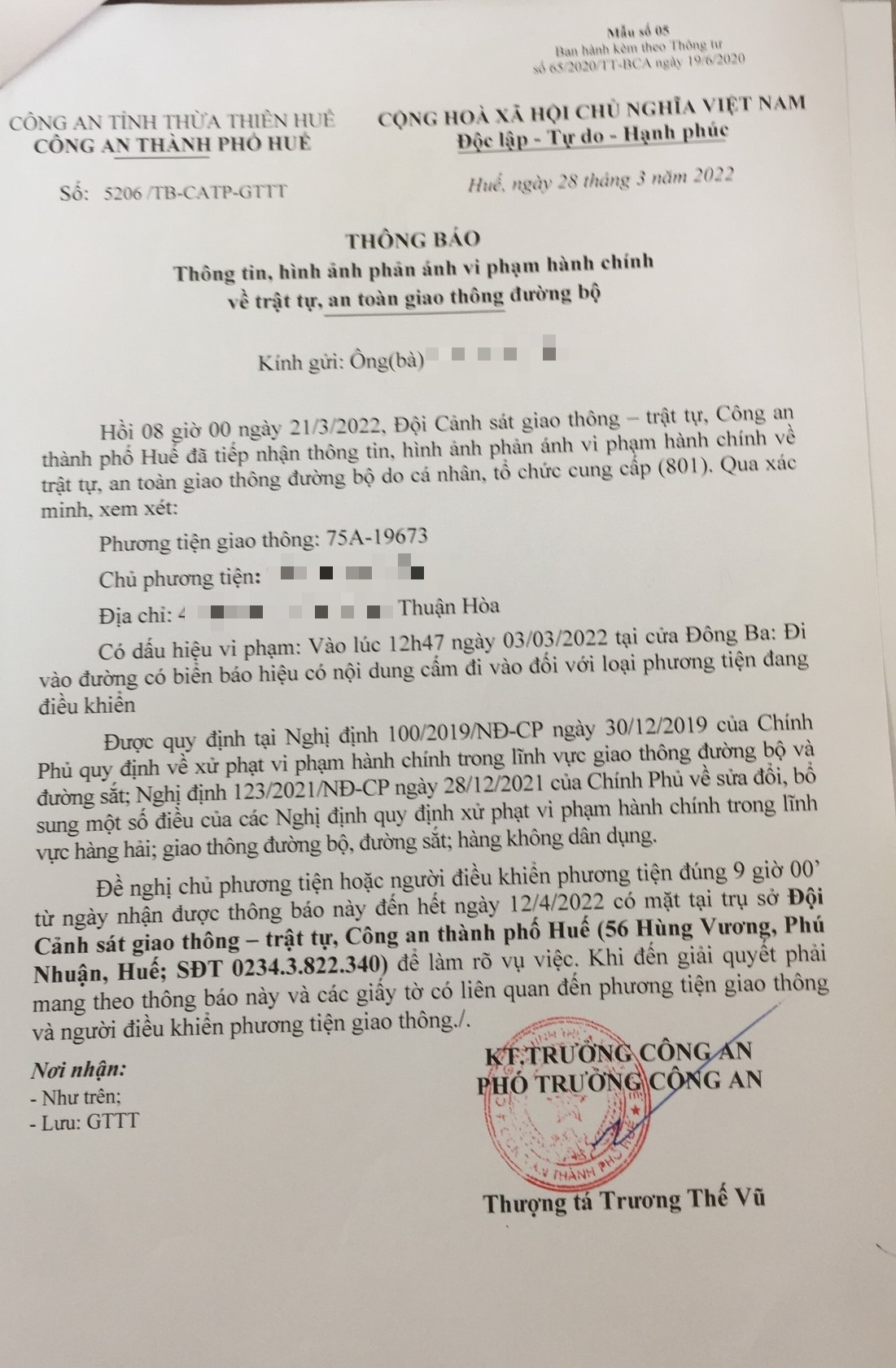 Vấn đề Ông/Bà phản ánh, Công an tỉnh đã chỉ đạo Công an thành phố Huế xác minh và trả lời như sau: