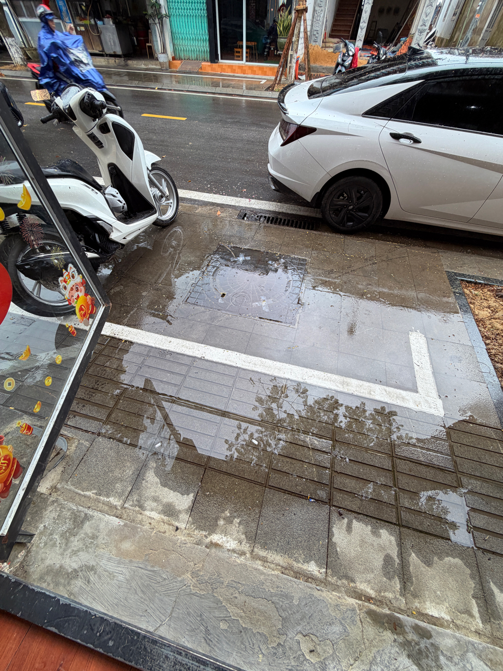 Vỉa hè tại 32 Nguyễn Trãi, phường Phú Xuân mới làm xong bị lún gây ứ đọng nước khi trời mưa. Nhờ chính quyền xử lý lại ạ.