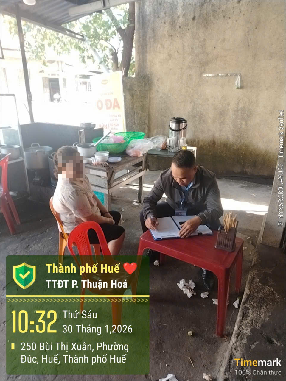 Trung tâm Dịch vụ sự nghiệp công phường Thuận Hoá đã chỉ đạo bộ phận Trật tự Đô thị tiến hành kiểm tra thực tế tại điểm phản ánh tại 253 Bùi Thị Xuân. Trung tâm đã tiến hành lập biên bản làm việc với Chủ quán Bún, Trung tâm yêu cầu chủ quán không được thải nước sinh hoạt chảy trực tiếp ra đường gây ô nhiểm môi trường và mất mỹ quan đô thị. Trung tâm sẽ thường xuyên kiểm tra, nếu phát hiện chủ quán vẫn cố tình thải nước thải sinh hoạt ra đường sẽ xử lý theo quy định (đính kèm biên bản làm việc và hình ảnh).