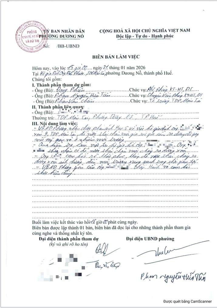 Vấn đề quý Ông/Bà phản ánh, UBND Dương Nỗ xin thông báo kết quả như sau: