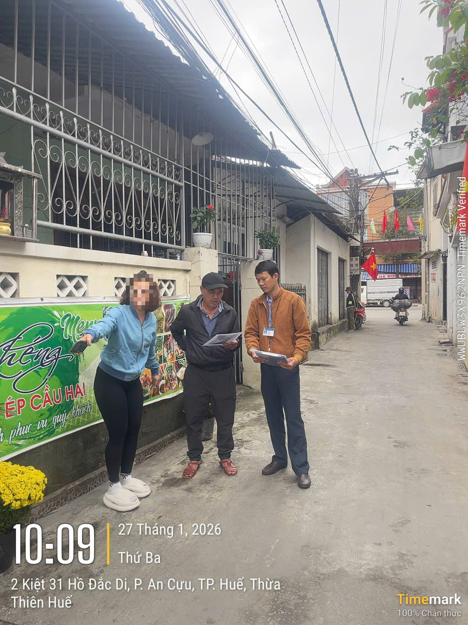 UBND phường đã tiến hành kiểm tra thực tế phản ánh. Tại thời điểm kiểm tra, UBND phường cùng Tổ trưởng dân phố 6AC đã làm việc với bà T.T.D.P ở tại địa chỉ 4/31 Hồ Đắc Di, phường An Cựu.