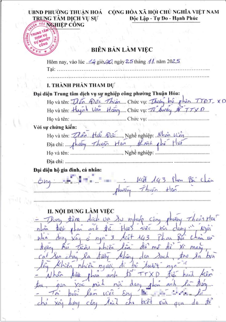 Vấn đề Quý Ông/Bà phản ánh, UBND phường Thuận Hóa đã chỉ đạo Trung tâm Dịch vụ sự nghiệp công phường kiểm tra và xin thông báo kết quả như sau: