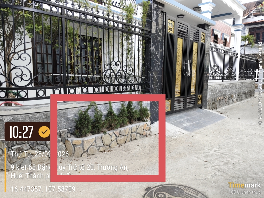 Tại thời điểm kiểm tra có Tổ trưởng Tổ dân phố 8 phường Phước Vĩnh (Cũ), Trung tâm đã tiến hành làm biên bản làm việc với bà Đ.T.B.T - chủ nhà, Bà T có ý kiến: Căn nhà này, Bà mua lại năm 2025 có sơn sửa lại nhưng đều nằm trên hiện trạng cũ trước đây, tôi có xây thêm bồn hoa phía trước nhà.