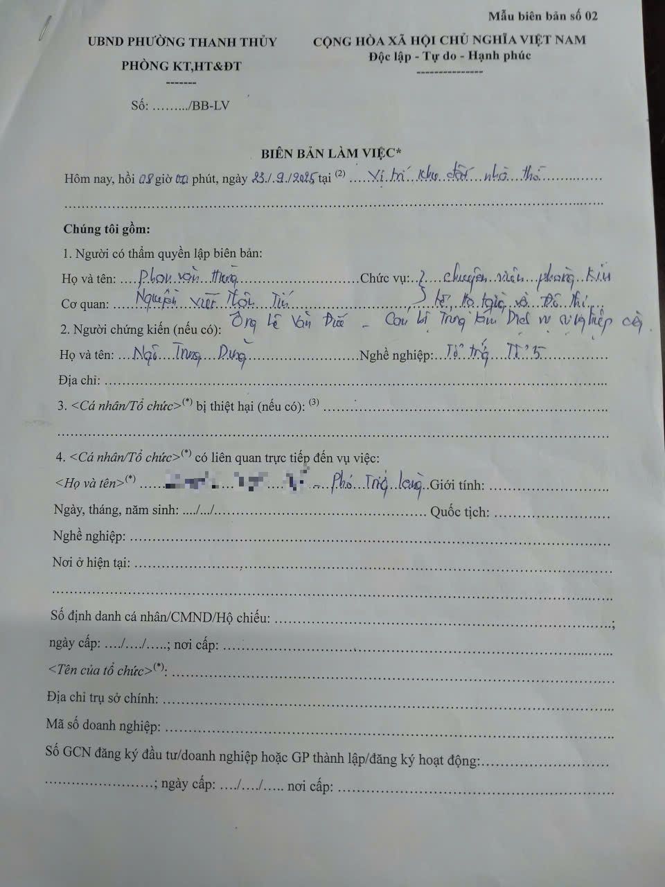 Ông N.D.L (thường trú tại Tổ 12, phường Thanh Thủy) cho xây dựng nhà vệ sinh tại khu vực đền Văn Thánh của làng Dạ Lê Thượng (thuộc tổ 5, phường Thanh Thủy). Nhà Văn Thánh là tài sản chung của làng, nhưng ông L không có giấy phép xây dựng, không có thẩm quyền gì lại đến xây dựng. Để phục vụ việc xây dựng, ông đã cho người tập kết vật liệu xây dựng ra lối đi chung, gây cản trở giao thông. Ngoài ra, thợ xây dựng vứt rác bừa bãi, gây ảnh hưởng vệ sinh chung, gây mất mỹ quan.