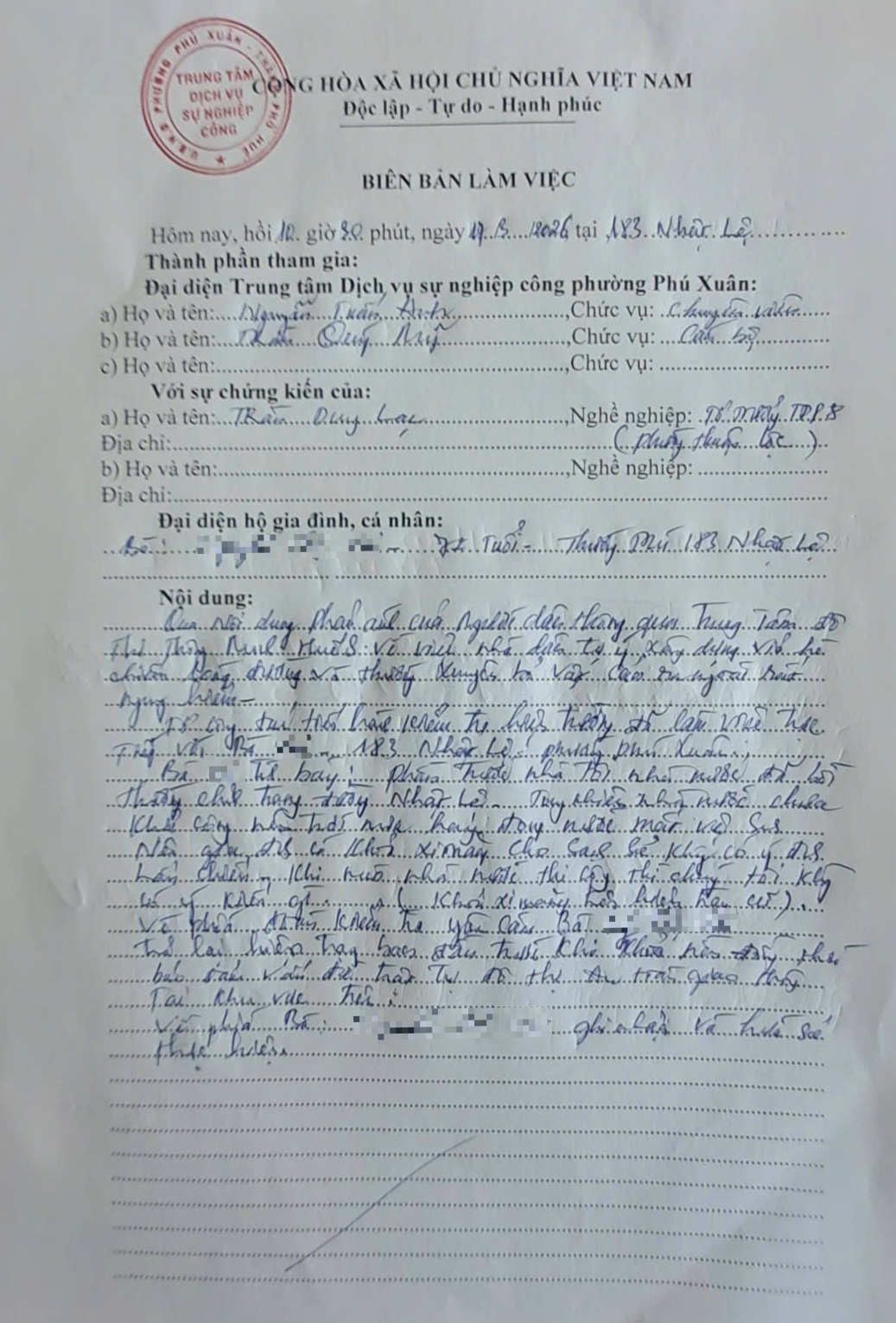 Sau khi nhận được phản ánh, Trung tâm Dịch vụ sự nghiệp công đã cử Tổ công tác đến địa chỉ 183 Nhật Lệ để tiến hành kiểm tra, khảo sát thực tế. Qua kiểm tra, ghi nhận có thực trạng như nội dung phản ánh.