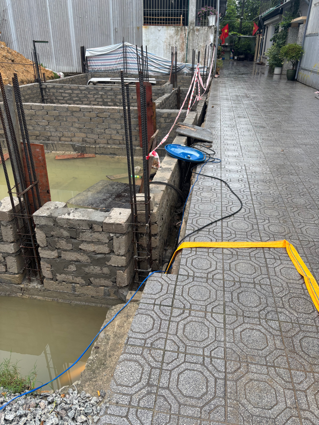 Xây nhà đào móng không lấp lại mưa đến nước từ đường tràn vào làm sập đất nền của ngõ dân sinh địa chỉ tại kiệt 22 Sơn Xuyên, phường Thủy Xuân, 1 bên ngõ thì để sắt thép, 1 bên thì ngõ bị hổng, bà con trong xóm đã phản ánh nhưng chủ thầu vẫn cố tình không chịu lấp lại đất và di chuyển sắt làm ảnh hưởng đến đi lại của bà con trong ngõ. Kính đề nghị cơ quan chức năng có biện pháp xử lý để bà con trong xóm yên tâm.