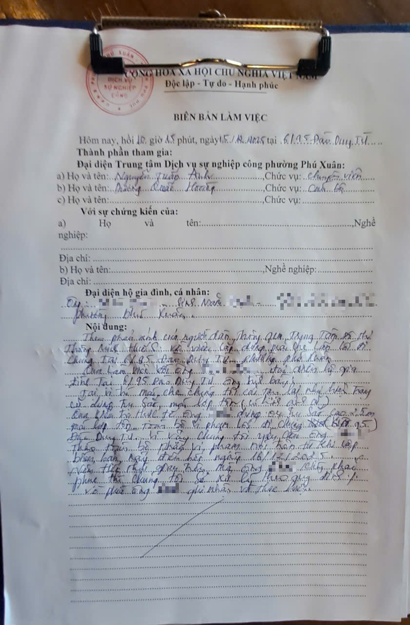 Sau khi tiếp nhận phản ánh, Trung tâm Dịch vụ Sự nghiệp công phường Phú Xuân đã cử Tổ công tác đến kiểm tra tại địa chỉ số 6, kiệt 95 Đào Duy Từ, phường Phú Xuân. Qua kiểm tra, ghi nhận hộ gia đình ông Tr. Q có dựng 04 trụ sắt cao khoảng 2,5m và lợp mái tôn, đúng như nội dung phản ánh. Tổ công tác đã yêu cầu ông Tr. Q tháo dỡ toàn bộ phần vi phạm trên từ khi lập biên bản đến hết ngày 16/12/2025.