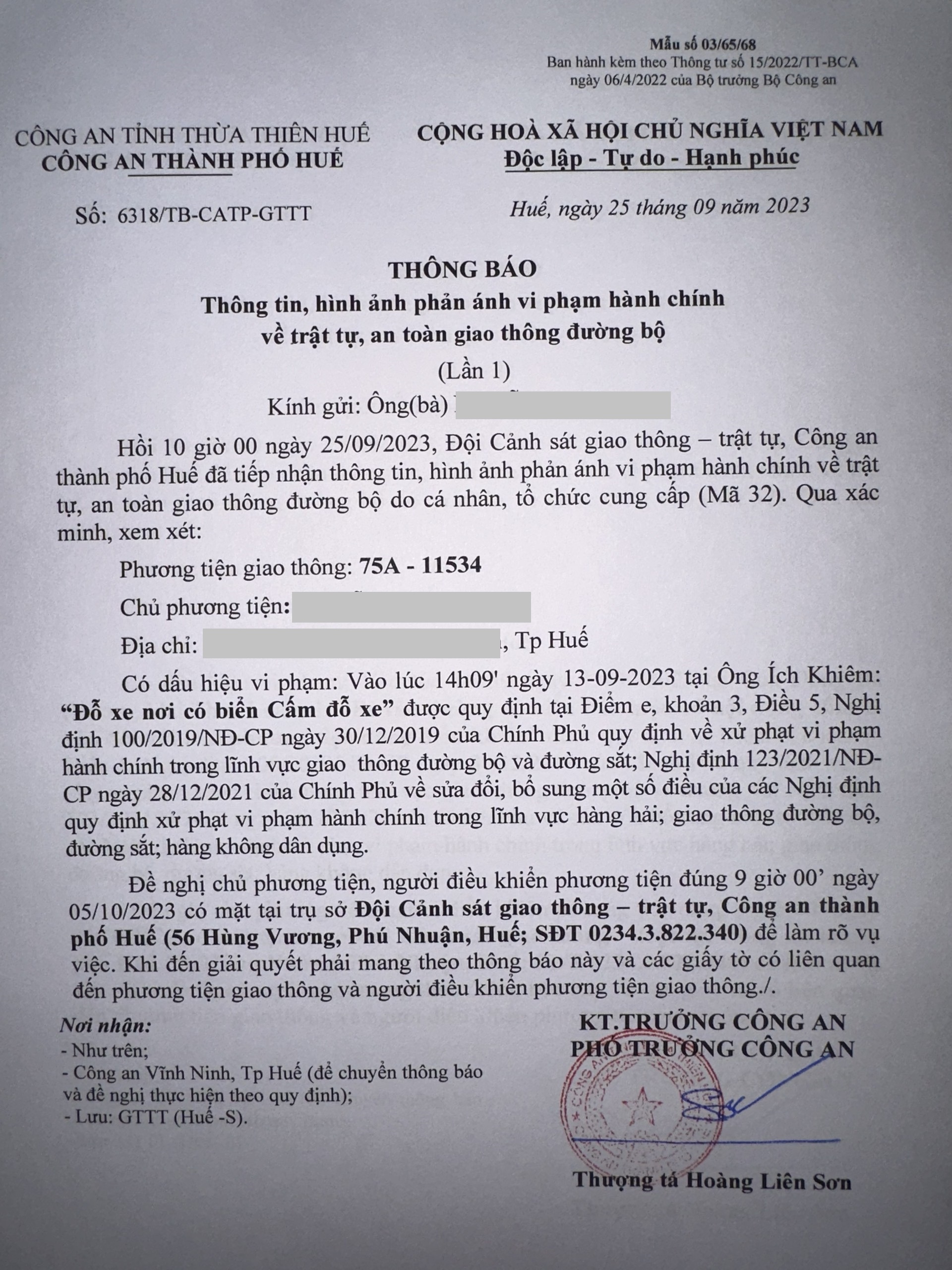 Vấn đề quý Ông/Bà phản ánh, Công an tỉnh đã chỉ đạo Công an thành phố Huế kiểm tra và xin thông báo kết quả như sau: