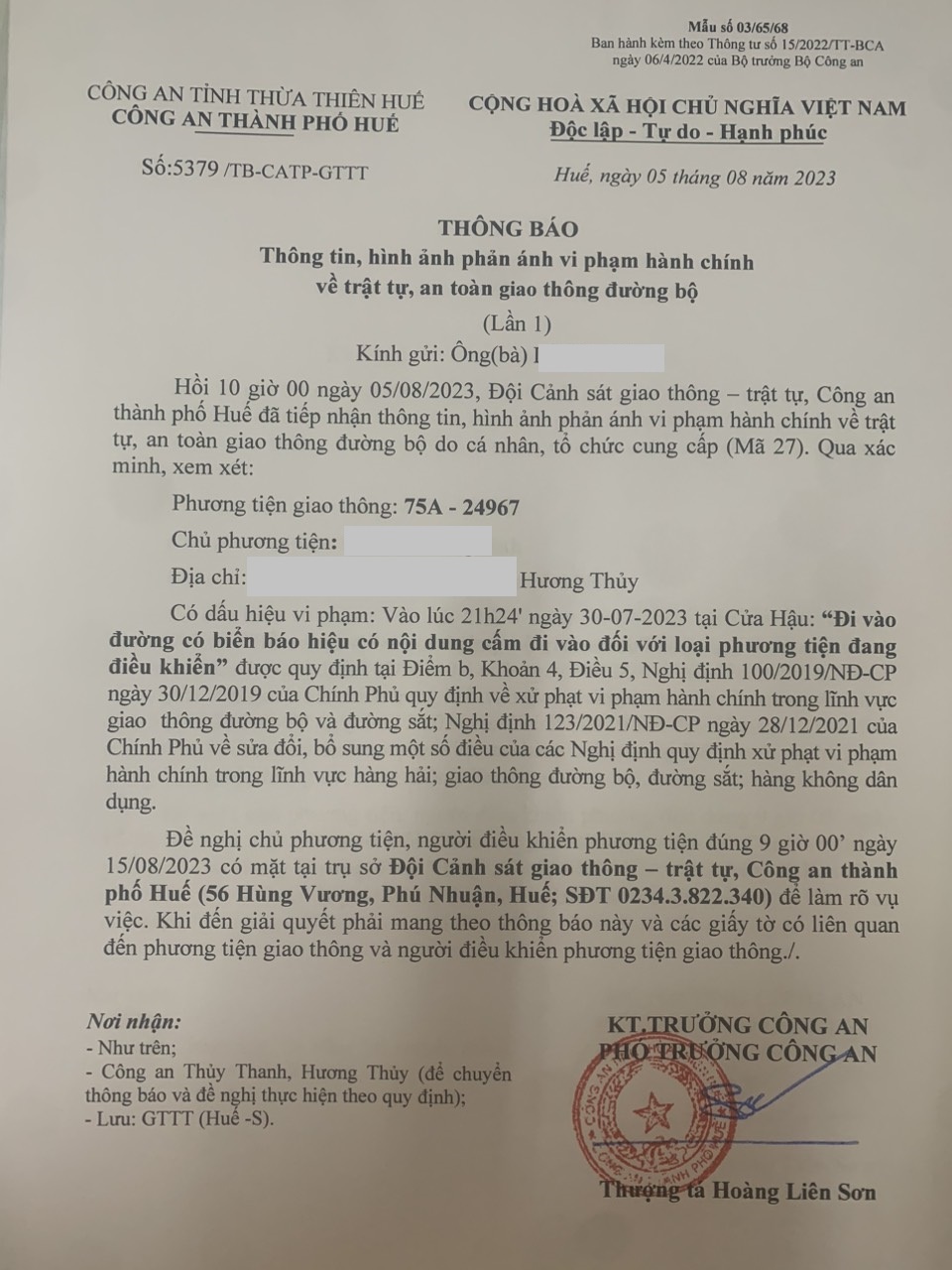 Vấn đề quý Ông/Bà phản ánh, Công an tỉnh đã chỉ đạo Công an thành phố Huế kiểm tra và xin thông báo kết quả như sau: