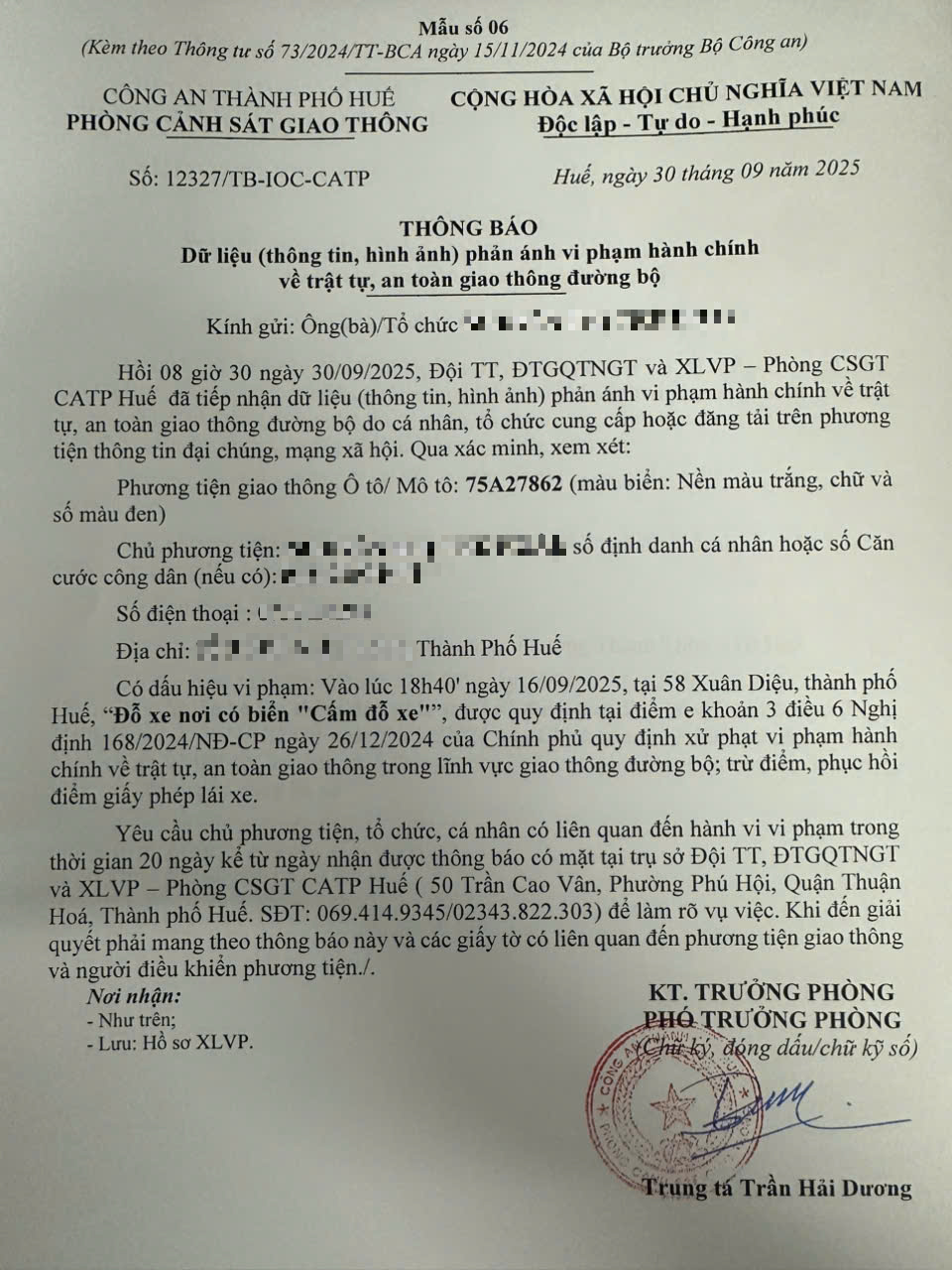 Vấn đề quý Ông/Bà phản ánh, Công an thành phố Huế đã chỉ đạo Phòng Cảnh sát giao thông kiểm tra và xin thông báo kết quả như sau: