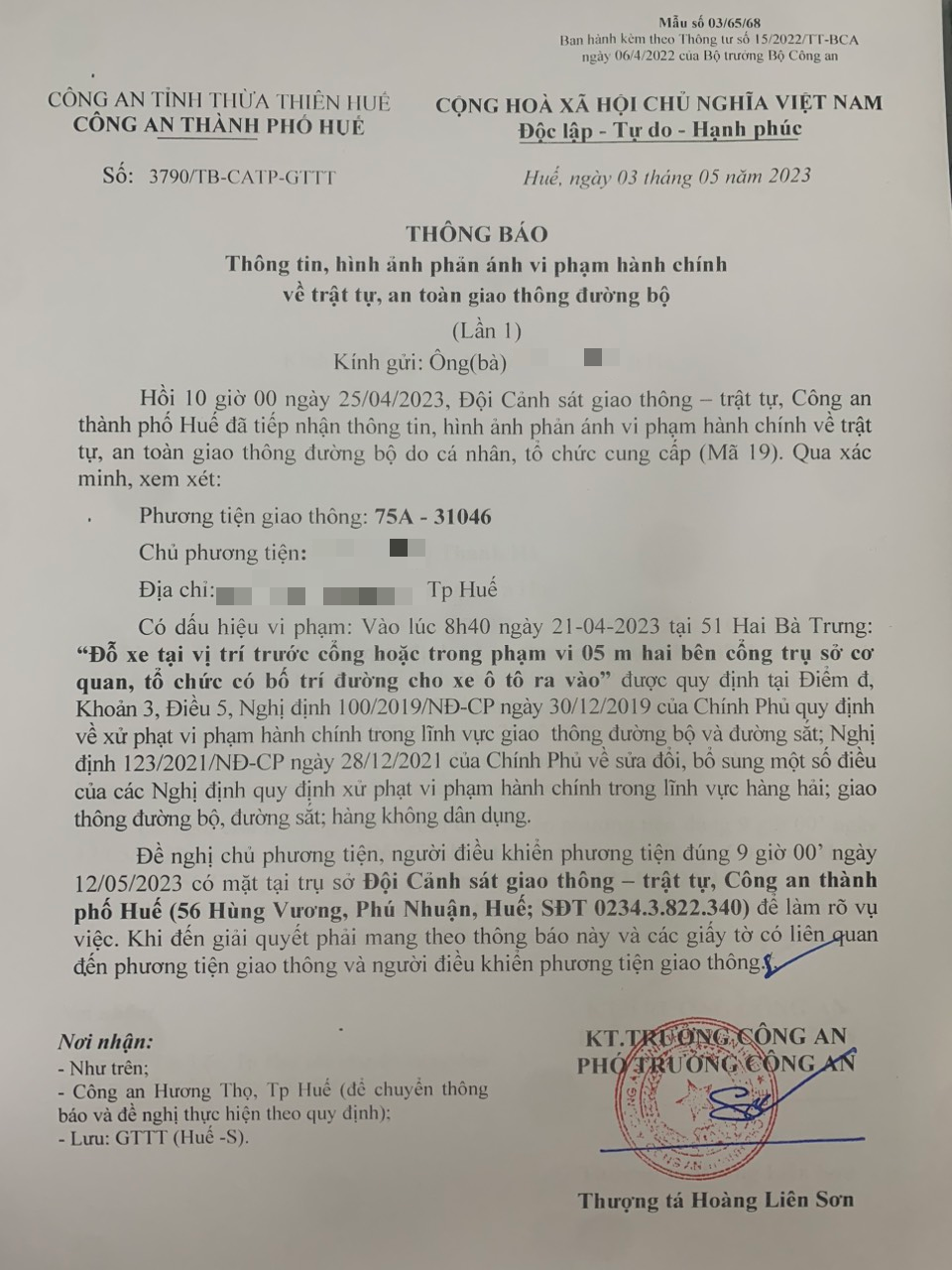 Vấn đề Ông/Bà phản ánh, Công an tỉnh đã chỉ đạo Công an thành phố Huế xin thông báo kết quả xử lý như sau: