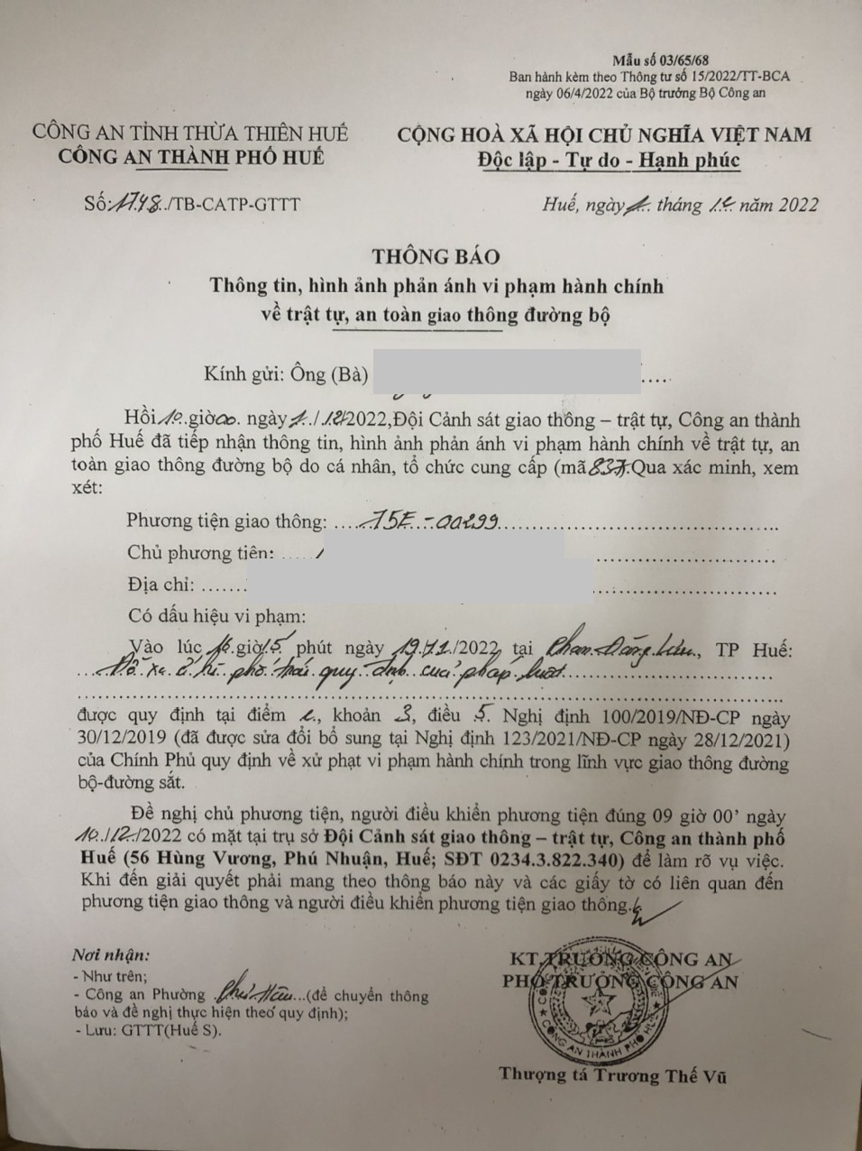 Công an thành phố cập nhật: Quyết định xử phạt. (Đính kèm QĐ)