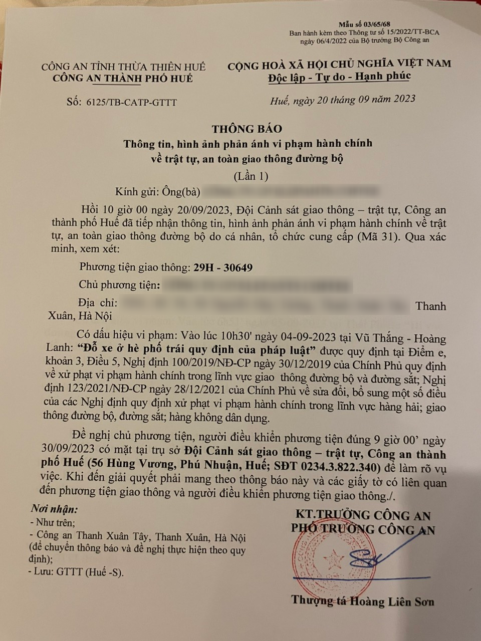 Vấn đề quý Ông/Bà phản ánh, Công an tỉnh đã chỉ đạo Công an thành phố Huế kiểm tra và xin thông báo kết quả xử lý như sau:
