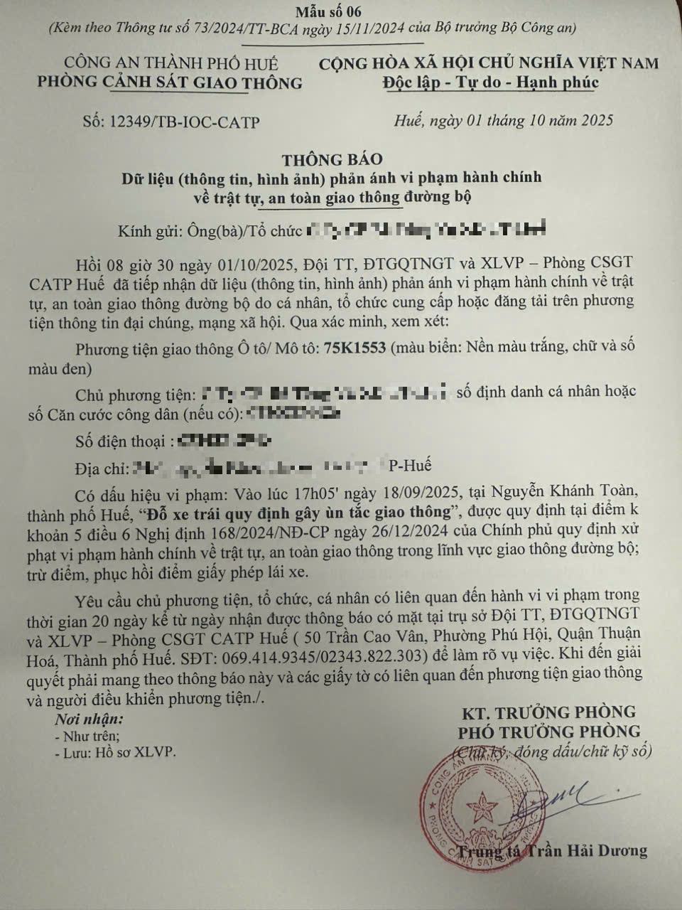 Vấn đề quý Ông/Bà phản ánh, Phòng Cảnh sát giao thông – Công an thành phố Huế đã kiểm tra và xin thông báo kết quả như sau: