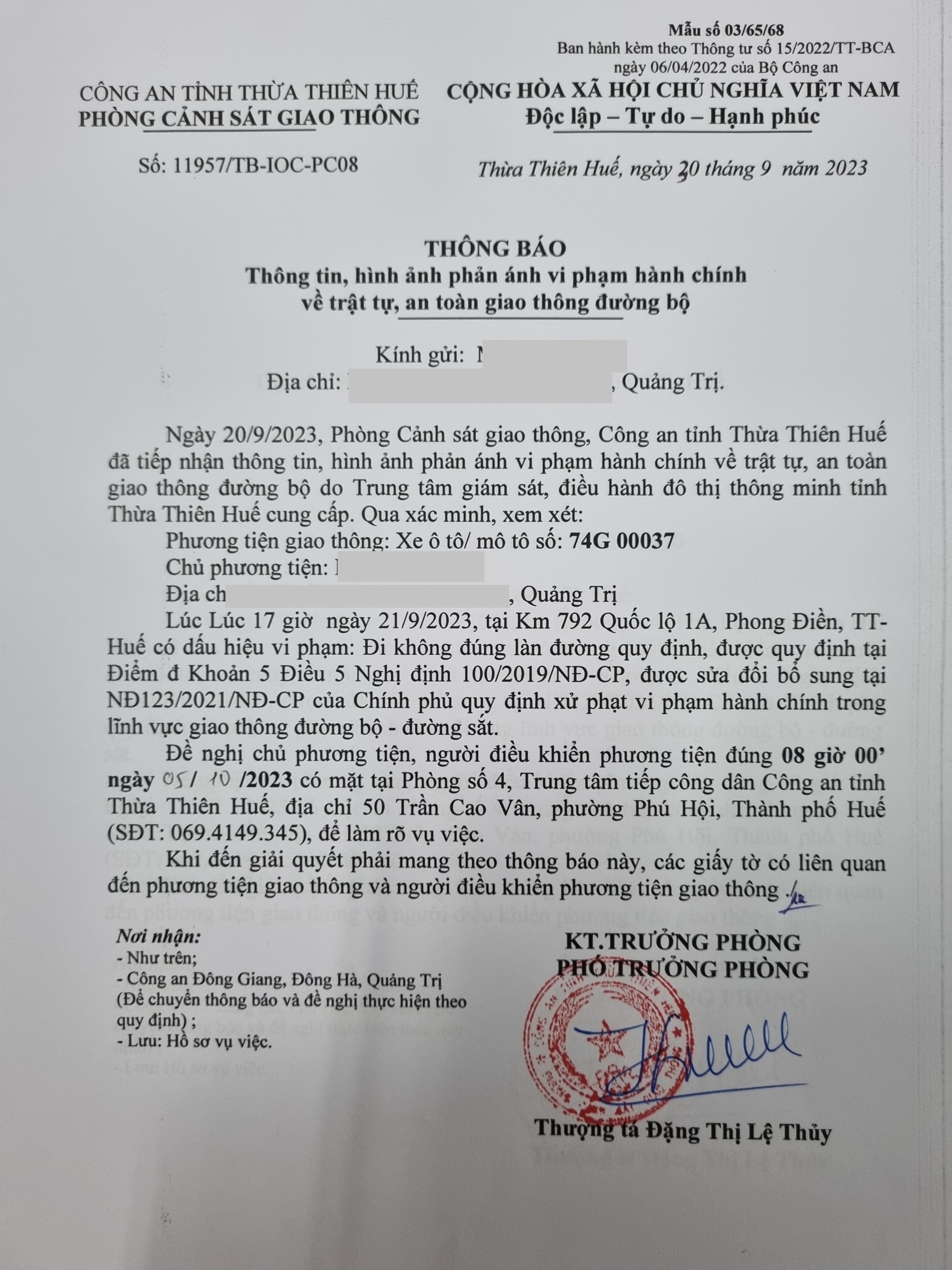 Vấn đề Ông/Bà phản ánh, Công an tỉnh đã chỉ đạo Phòng Cảnh sát giao thông xác minh và xin thông báo kết quả như sau: