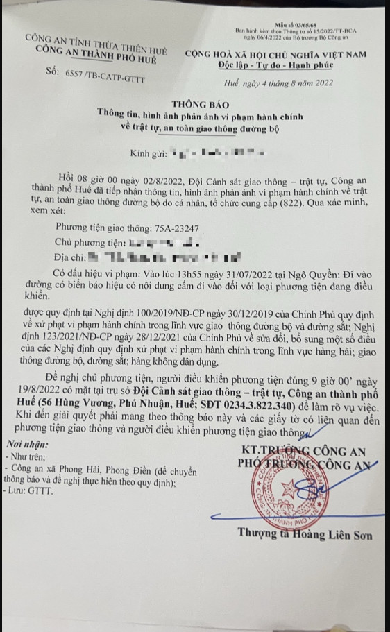 Công an thành phố đã lập hồ sơ, thông báo chủ phương tiện đến làm việc. Tuy nhiên, hiện chủ phương tiện vẫn chưa trình diện tại cơ quan. Công an thành phố sẽ gửi thông báo cho cơ quan đăng kiểm để đưa phương tiện vào cảnh báo trên Chương trình Quản lý kiểm định.