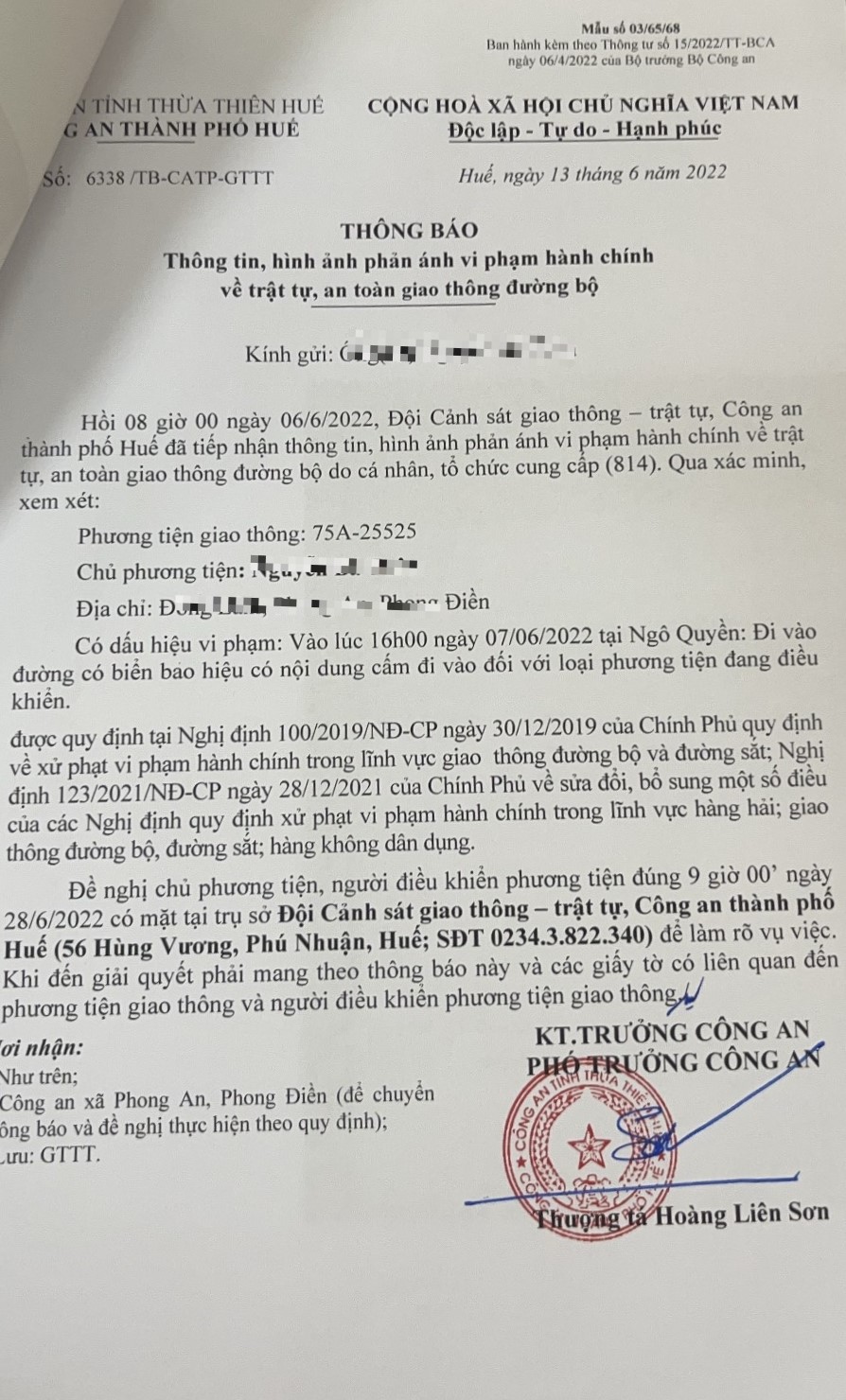 Vấn đề Ông/Bà phản ánh, Công an tỉnh đã chỉ đạo Công an thành phố Huế kiểm tra và trả lời như sau:
