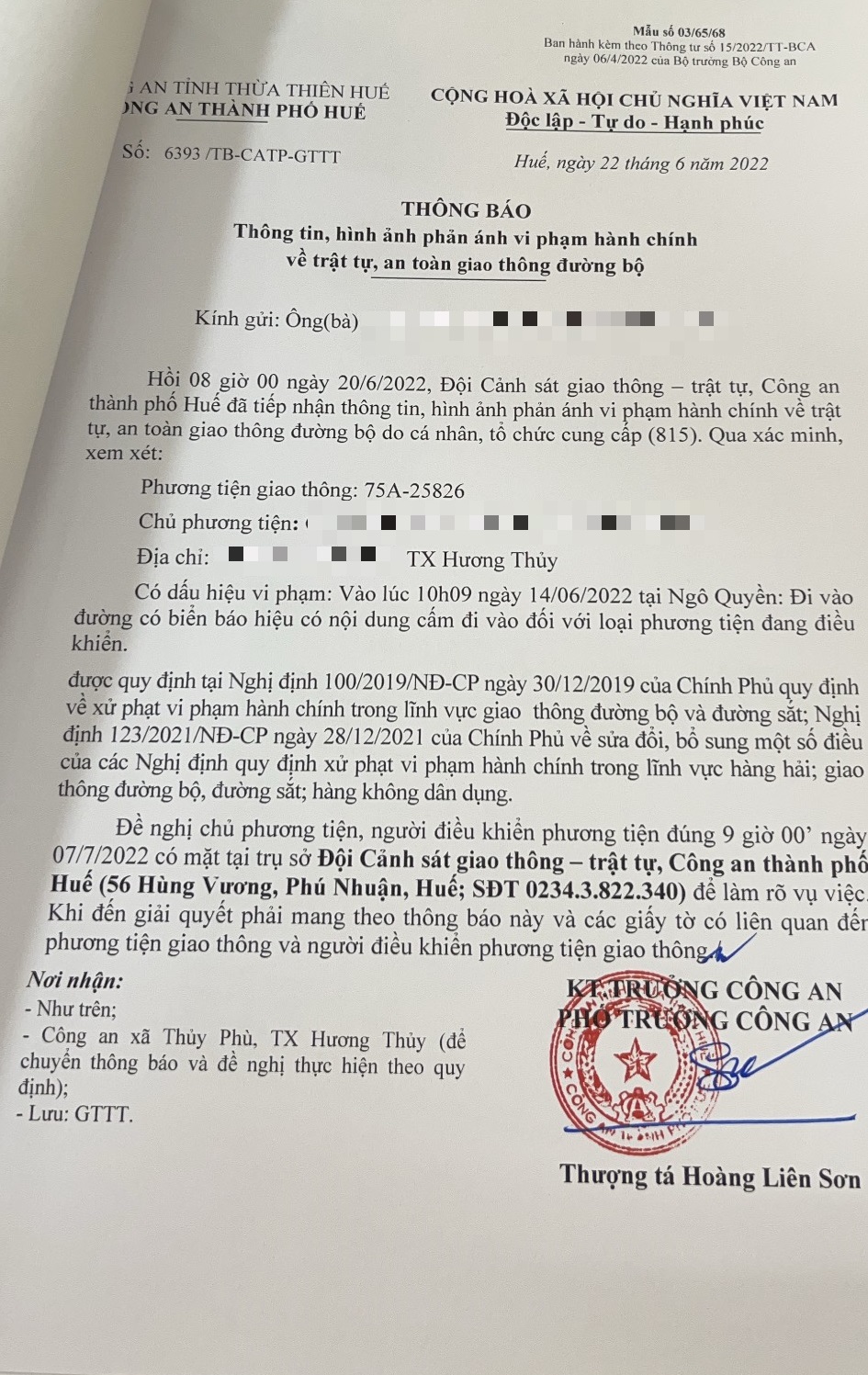 Vấn đề Ông/Bà phản ánh, Công an tỉnh đã chỉ đạo Công an thành phố Huế xin thông báo kết quả xử lý như sau: