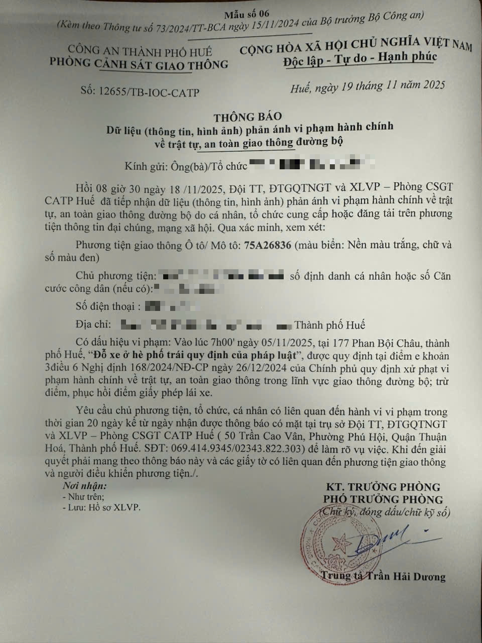 Vấn đề quý Ông/Bà phản ánh, Phòng Cảnh sát giao thông – Công an thành phố Huế đã kiểm tra và xin thông báo kết quả như sau: