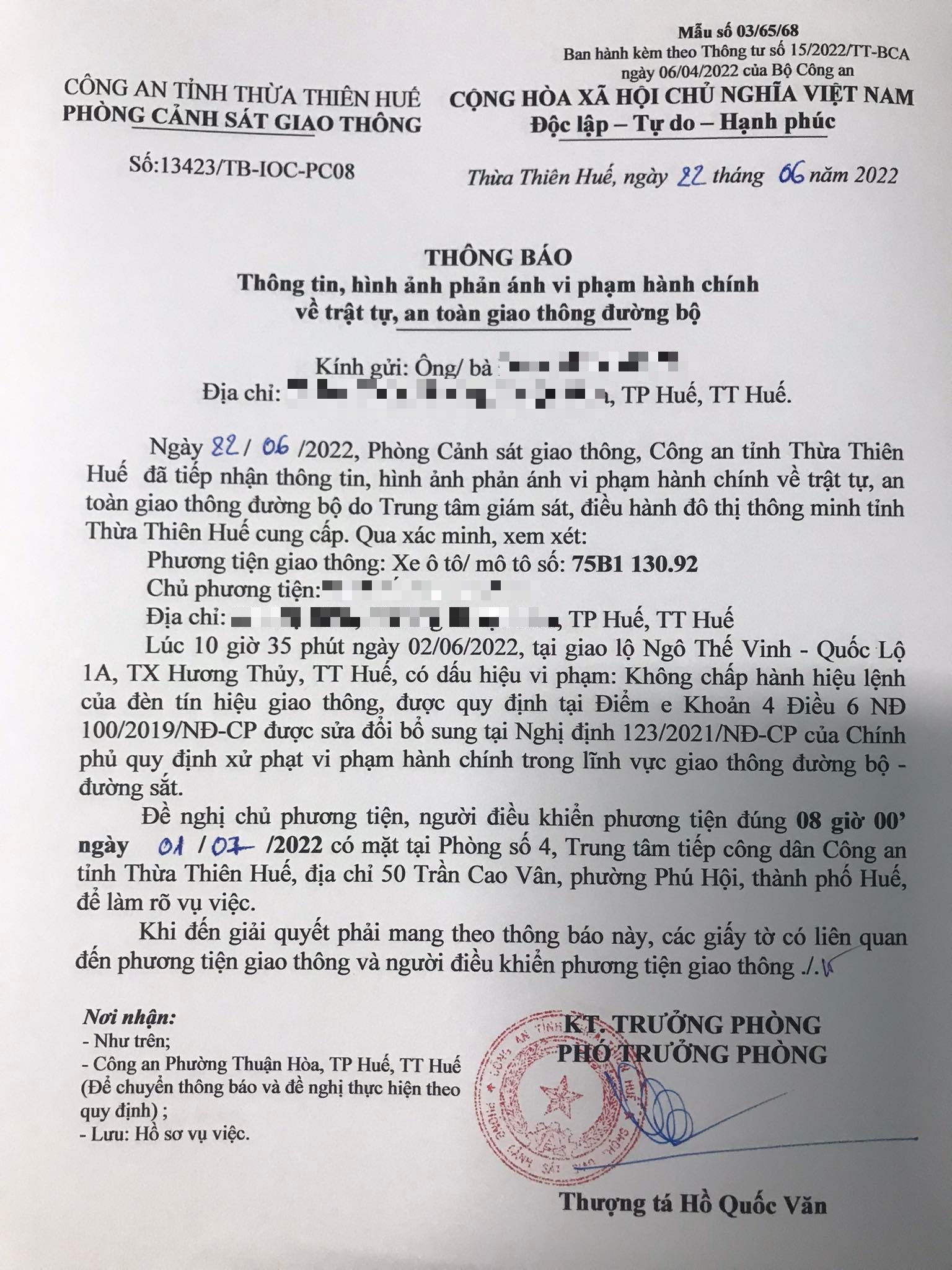 Phòng Cảnh sát giao thông đã gửi thông báo, yêu cầu chủ phương tiện đến làm việc vào ngày 01/7/2022. Tuy nhiên, hiện chủ phương tiện vẫn chưa trình diện tại cơ quan. Phòng Cảnh sát giao thông sẽ tiếp tục thông báo Công an địa phương nơi chủ phương tiện thường trú; đồng thời, thông báo các tổ tuần tra kiểm soát trên địa bàn, trong quá trình làm nhiệm vụ nếu phát hiện sẽ tiến hành dừng xe để xử lý.