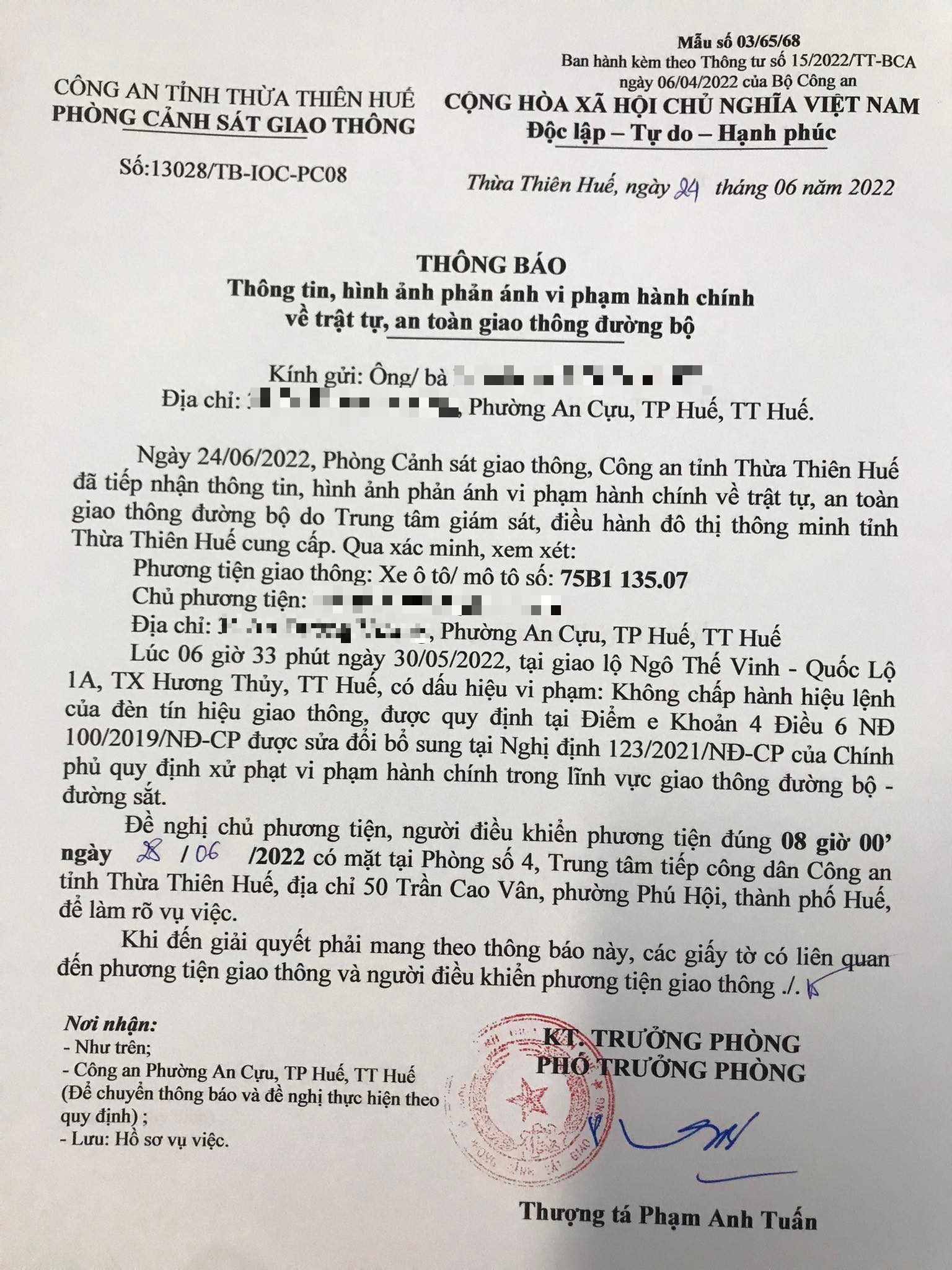 Vấn đề Ông/Bà phản ánh, Công an tỉnh đã chỉ đạo Phòng Cảnh sát giao thông xác minh và trả lời như sau: