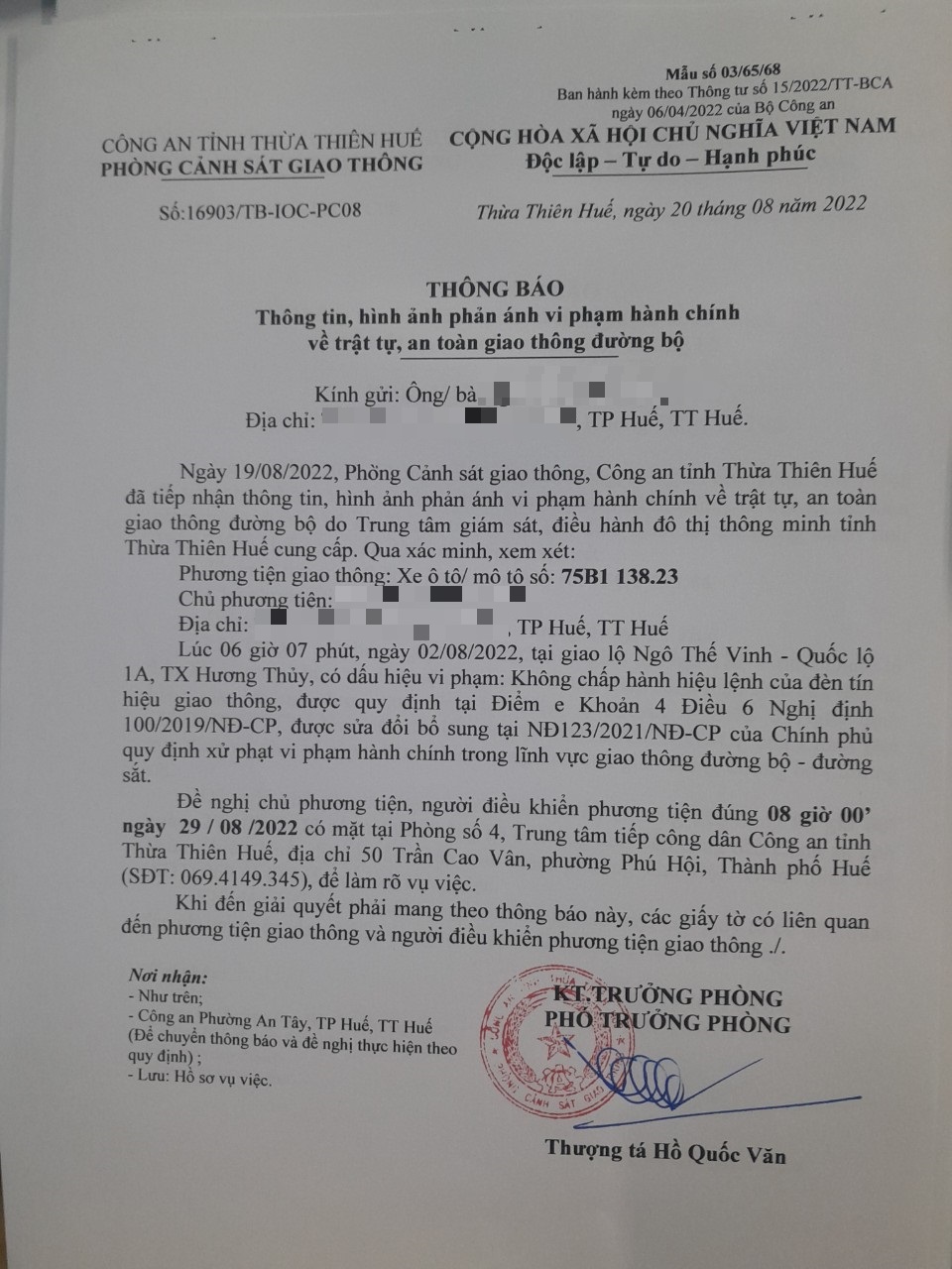 Phòng CSGT đã gửi thông báo, yêu cầu chủ phương tiện đến làm việc theo quy định của pháp luật. Tuy nhiên, đã quá ngày hẹn nhưng chủ phương tiện vẫn chưa đến làm việc theo yêu cầu. Phòng CSGT sẽ tiếp tục thông báo Công an địa phương nơi chủ phương tiện thường trú; đồng thời, thông báo các tổ tuần tra kiểm soát trên địa bàn, trong quá trình làm nhiệm vụ nếu phát hiện sẽ tiến hành dừng xe để xử lý.