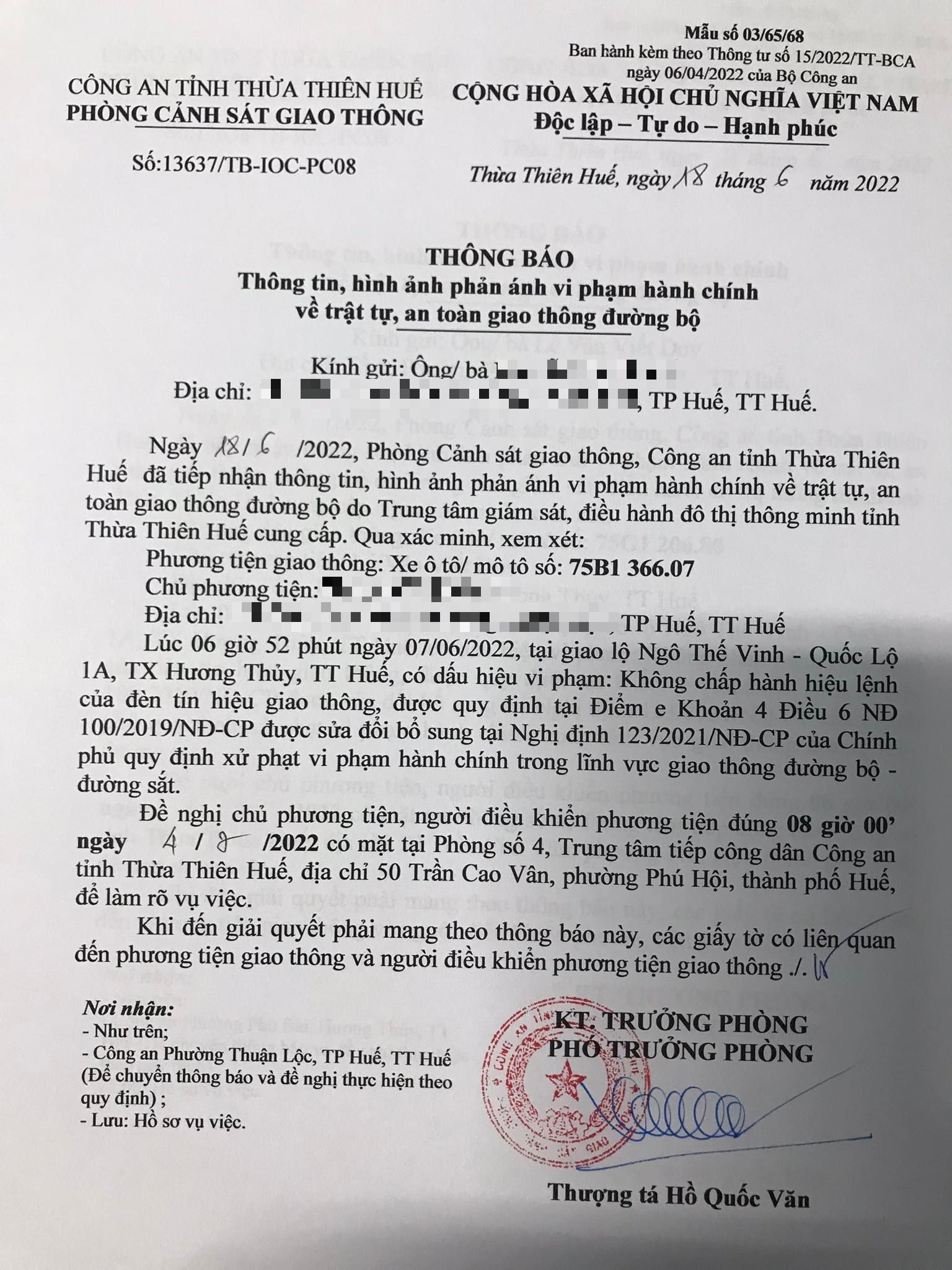 Phòng Cảnh sát giao thông đã gửi thông báo, yêu cầu chủ phương tiện đến làm việc vào ngày 04/7/2022. Tuy nhiên, hiện chủ phương tiện vẫn chưa trình diện tại cơ quan. Phòng Cảnh sát giao thông sẽ tiếp tục thông báo Công an địa phương nơi chủ phương tiện thường trú; đồng thời, thông báo các tổ tuần tra kiểm soát trên địa bàn, trong quá trình làm nhiệm vụ nếu phát hiện sẽ tiến hành dừng xe để xử lý.