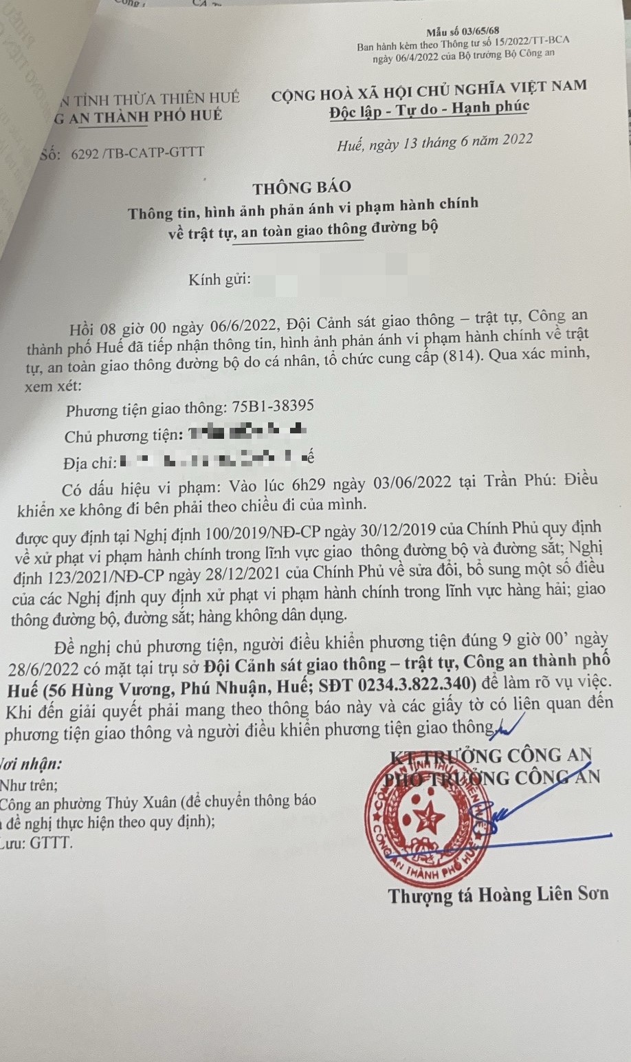 Vấn đề Ông/Bà phản ánh, Công an tỉnh đã chỉ đạo Công an thành phố Huế kiểm tra và trả lời như sau: