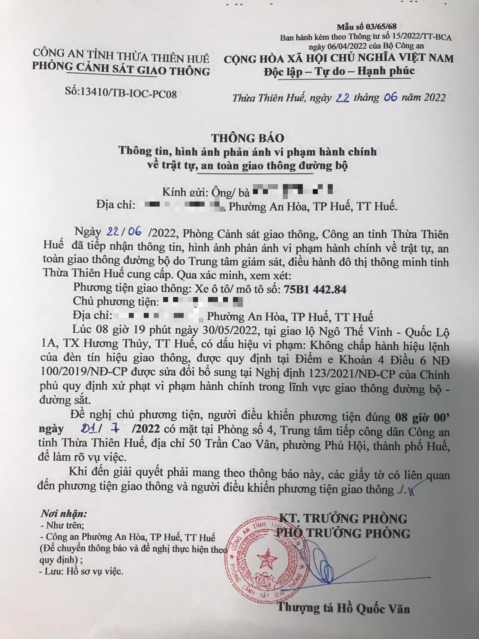 Phòng Cảnh sát giao thông đã gửi thông báo, yêu cầu chủ phương tiện đến làm việc vào ngày 01/7/2022. Tuy nhiên, hiện chủ phương tiện vẫn chưa trình diện tại cơ quan. Phòng Cảnh sát giao thông sẽ tiếp tục thông báo Công an địa phương nơi chủ phương tiện thường trú; đồng thời, thông báo các tổ tuần tra kiểm soát trên địa bàn, trong quá trình làm nhiệm vụ nếu phát hiện sẽ tiến hành dừng xe để xử lý.