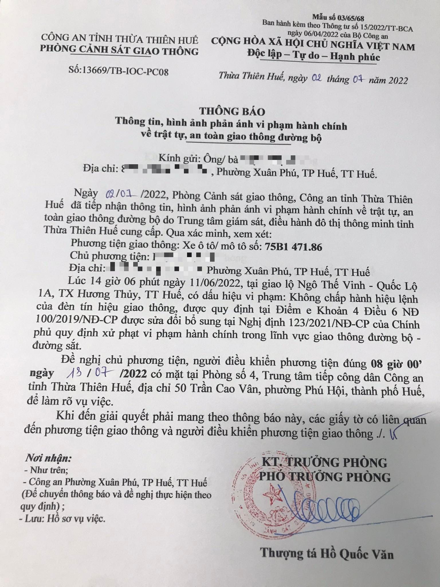 Phòng Cảnh sát giao thông đã gửi thông báo, yêu cầu chủ phương tiện đến làm việc vào ngày 13/7/2022. Tuy nhiên, hiện chủ phương tiện vẫn chưa trình diện tại cơ quan. Phòng Cảnh sát giao thông sẽ tiếp tục thông báo Công an địa phương nơi chủ phương tiện thường trú; đồng thời, thông báo các tổ tuần tra kiểm soát trên địa bàn, trong quá trình làm nhiệm vụ nếu phát hiện sẽ tiến hành dừng xe để xử lý.