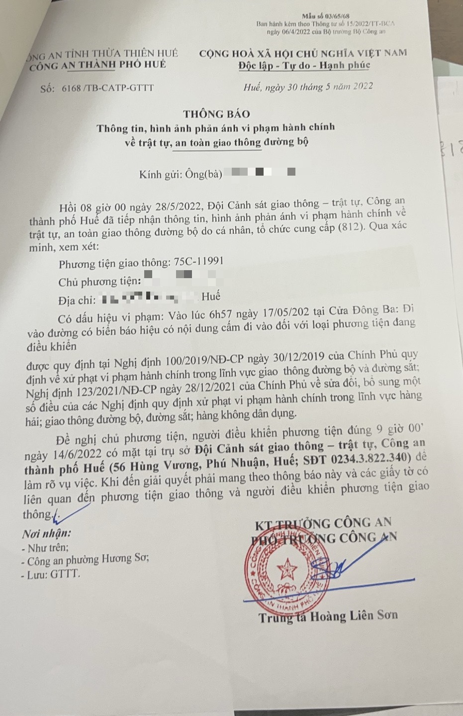 Công an thành phố cập nhật Quyết định xử phạt. (Đính kèm QĐ)