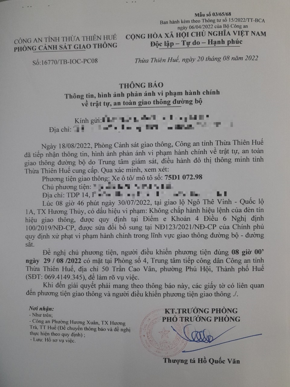 Vấn đề Ông/Bà phản ánh, Công an tỉnh đã chỉ đạo Phòng Cảnh sát giao thông xin thông báo kết quả xử lý như sau:
