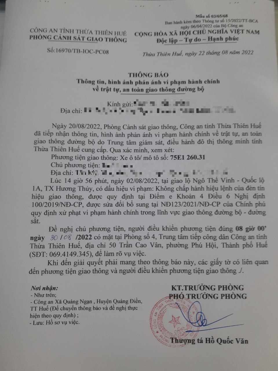 Vấn đề Ông/Bà phản ánh, Công an tỉnh đã chỉ đạo Phòng Cảnh sát giao thông xin thông báo kết quả xử lý như sau: