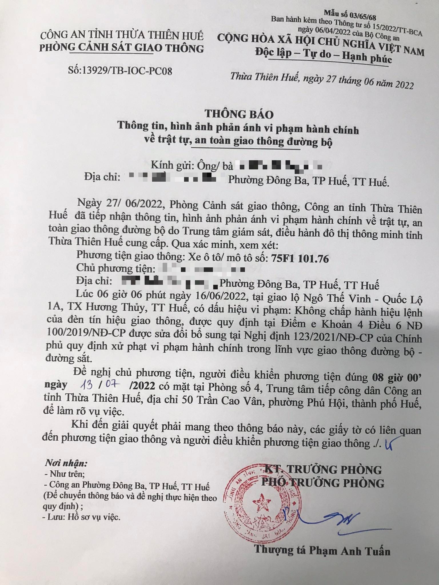 Vấn đề Ông/Bà phản ánh, Công an tỉnh đã chỉ đạo Phòng Cảnh sát giao thông xin thông báo kết quả xử lý như sau:
