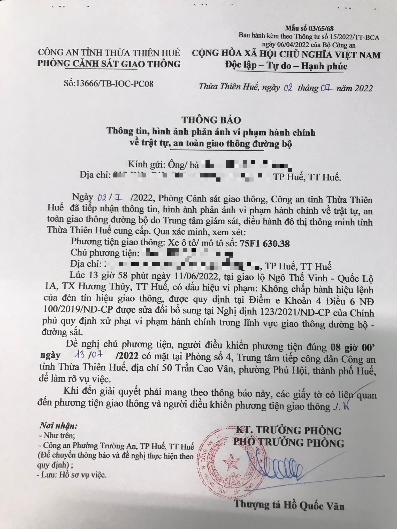Phòng Cảnh sát giao thông đã gửi thông báo, yêu cầu chủ phương tiện đến làm việc vào ngày 13/7/2022. Tuy nhiên, hiện chủ phương tiện vẫn chưa trình diện tại cơ quan. Phòng Cảnh sát giao thông sẽ tiếp tục thông báo Công an địa phương nơi chủ phương tiện thường trú; đồng thời, thông báo các tổ tuần tra kiểm soát trên địa bàn, trong quá trình làm nhiệm vụ nếu phát hiện sẽ tiến hành dừng xe để xử lý.