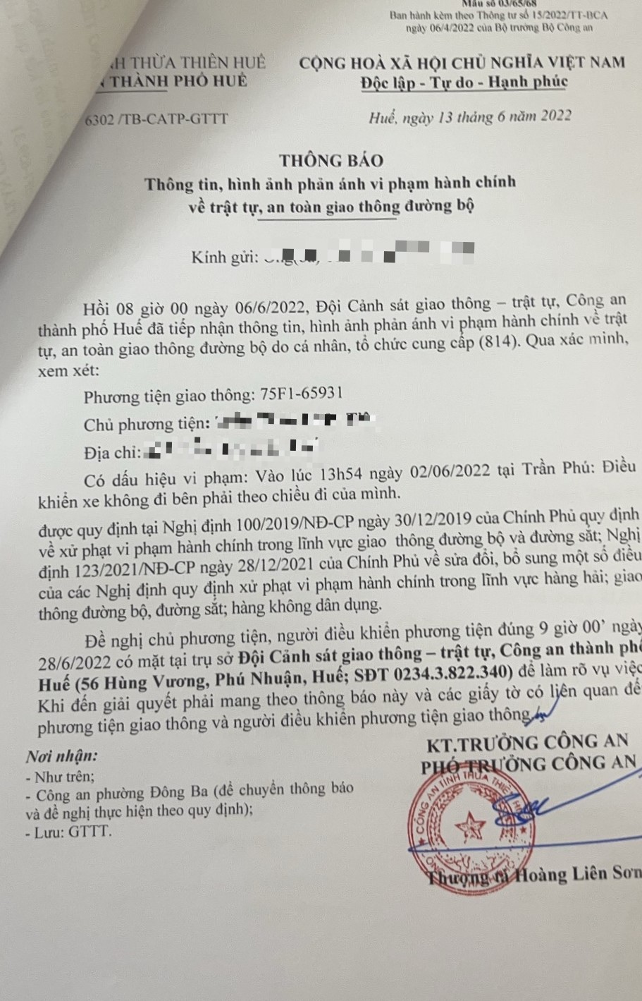 Công an thành phố đã lập hồ sơ, thông báo chủ phương tiện đến làm việc vào ngày 28/6/2022. Tuy nhiên, hiện chủ phương tiện vẫn chưa trình diện tại cơ quan. Công an thành phố Huế sẽ tiếp tục thông báo lực lượng tuần tra trên địa bàn, trong quá trình làm nhiệm vụ phát hiện, xử lý.