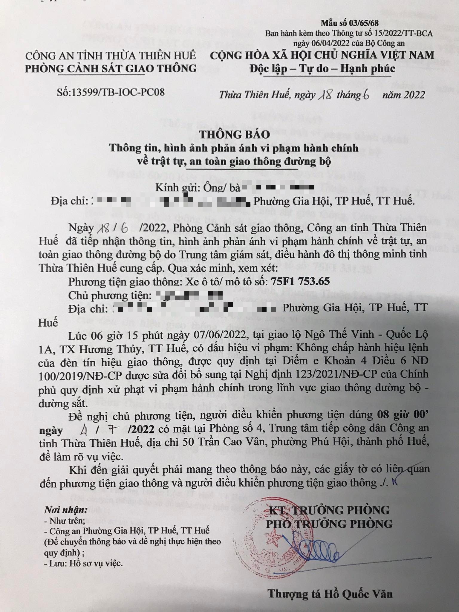 Phòng Cảnh sát giao thông đã gửi thông báo, yêu cầu chủ phương tiện đến làm việc vào ngày 04/7/2022. Tuy nhiên, hiện chủ phương tiện vẫn chưa trình diện tại cơ quan. Phòng Cảnh sát giao thông sẽ tiếp tục thông báo Công an địa phương nơi chủ phương tiện thường trú; đồng thời, thông báo các tổ tuần tra kiểm soát trên địa bàn, trong quá trình làm nhiệm vụ nếu phát hiện sẽ tiến hành dừng xe để xử lý.