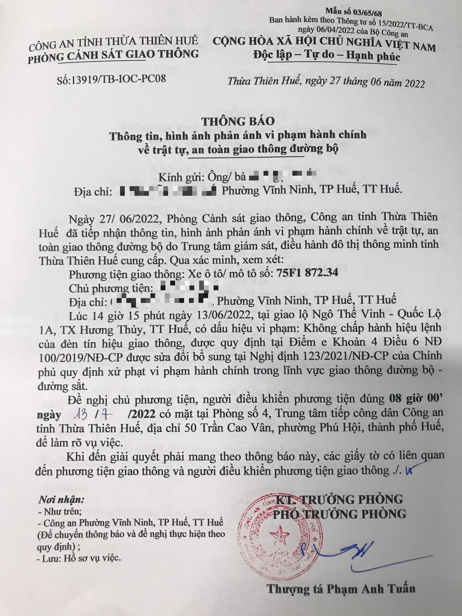 Vấn đề Ông/Bà phản ánh, Công an tỉnh đã chỉ đạo Phòng Cảnh sát giao thông xin thông báo kết quả xử lý như sau: