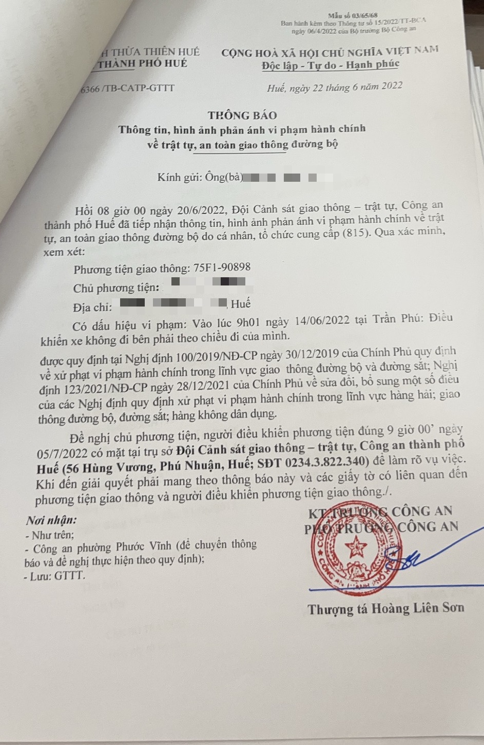 Công an thành phố đã lập hồ sơ, thông báo chủ phương tiện đến làm việc vào ngày 05/7/2022. Tuy nhiên, hiện chủ phương tiện vẫn chưa trình diện tại cơ quan. Công an thành phố Huế sẽ tiếp tục thông báo lực lượng tuần tra trên địa bàn, trong quá trình làm nhiệm vụ phát hiện, xử lý.