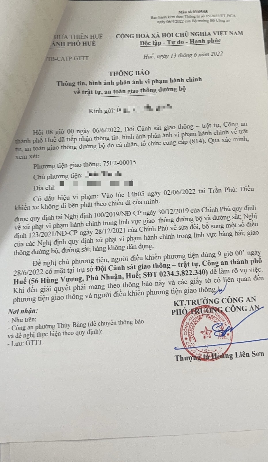 Sau khi nhận được phản ánh, Công an tỉnh đã chỉ đạo Công an thành phố Huế xác minh, kết quả như sau: