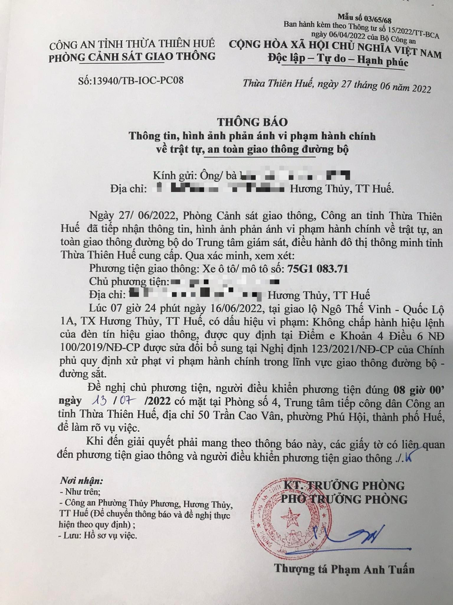 Vấn đề Ông/Bà phản ánh, Công an tỉnh đã chỉ đạo Phòng Cảnh sát giao thông xin thông báo kết quả xử lý như sau: