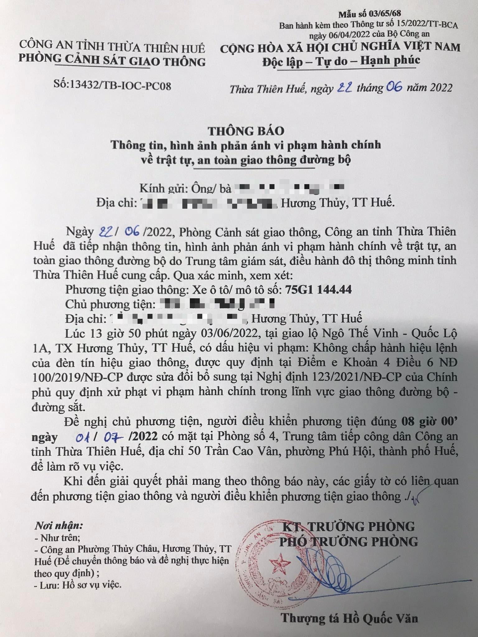 Phòng Cảnh sát giao thông đã gửi thông báo, yêu cầu chủ phương tiện đến làm việc vào ngày 01/7/2022. Tuy nhiên, hiện chủ phương tiện vẫn chưa trình diện tại cơ quan. Phòng Cảnh sát giao thông sẽ tiếp tục thông báo Công an địa phương nơi chủ phương tiện thường trú; đồng thời, thông báo các tổ tuần tra kiểm soát trên địa bàn, trong quá trình làm nhiệm vụ nếu phát hiện sẽ tiến hành dừng xe để xử lý.